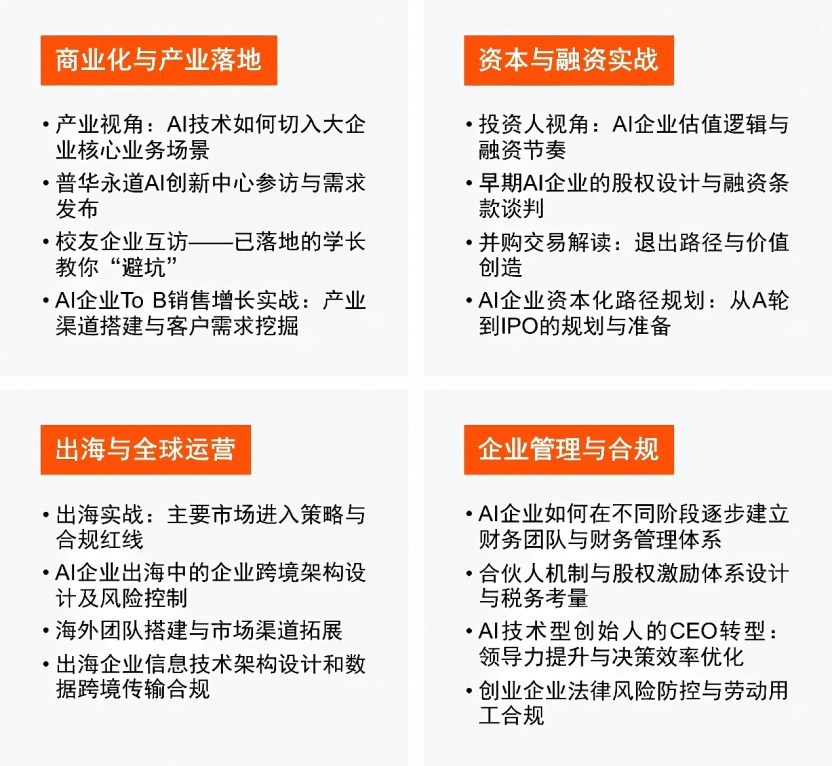 我们将4次集中模块,设计为“产业对接+专业课程”双线并行。大多数时间都在“走出去”——走进标杆企业、深入真实场景、对接资本前沿。