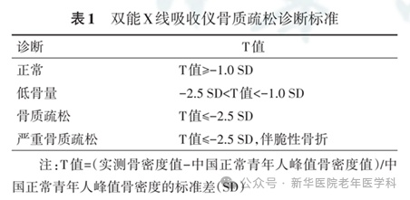 其次,对于没有骨折的中老年人,临床常用的骨密度测量方法有双能X线吸收检测法(DXA)和定量计算机断层照相术(QCT),公认的骨质疏松症诊断标准是基于DXA 测量的结果。