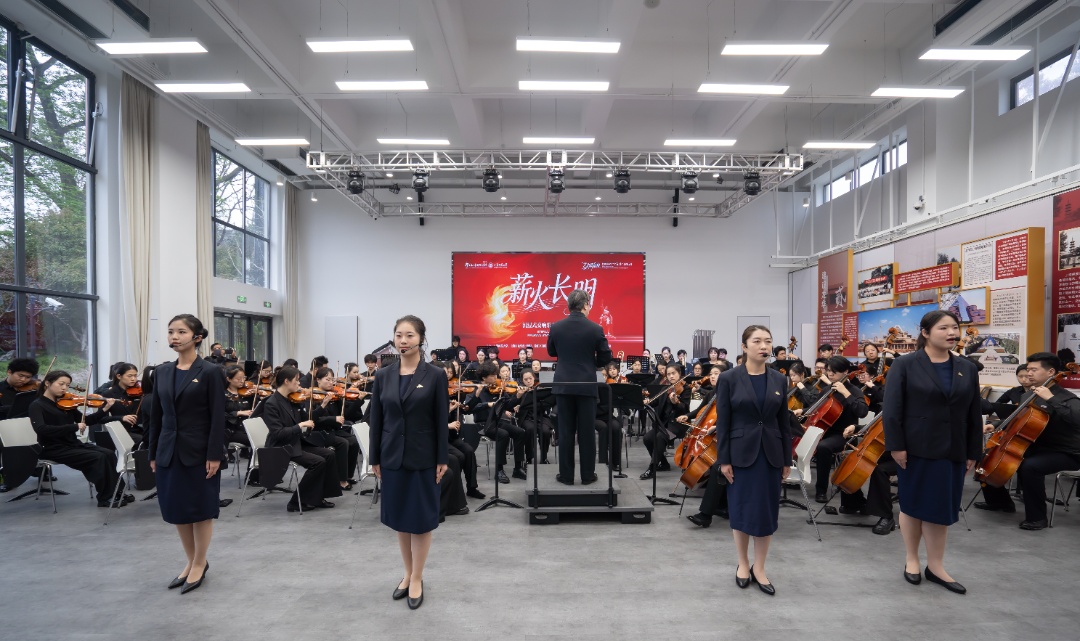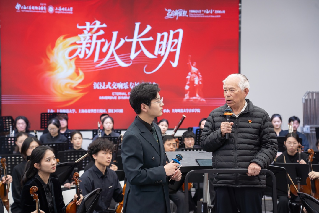 “花香徐来·汇巾帼”思政活动近日走进龙华烈士陵园,以沉浸式交响音乐会和巾帼思政实践相结合的形式,致敬革命先烈,传承红色基因,引领女性筑牢跟党奋进新征程的思想根基。 由上海师范大学、上海市龙华烈士陵园、徐汇区妇联联合主办的“薪火长明”沉浸式交响乐专场音乐会,在龙华烈士陵园多媒体中心肃然奏响。市妇联党组书记、主席张华,市退役军人事务局党组成员、副局长阳礼华,市妇联副主席李铭,市妇联副主席陈建军,市妇联副主席金佩,上海师范大学党委副书记、副校长赵扬,区委常委、副区长、区妇儿工委主任罗华品等领导出席活动。 “薪火长明”沉浸式交响乐专场音乐会 演出在《第一交响乐序曲》中启幕。弦乐声部层层铺陈,低回而深情。朗诵《你们是一部永远读不完的书》在音乐中缓缓展开,字句之间,历史的厚重与情感的温度彼此交织。当乐声渐入高潮,旋律与诵读交相辉映,仿佛将观众带回那段风雨如晦却信仰炽烈的年代。 记者在现场还见到了已经92岁高龄的知名作曲家何占豪。他现身讲述交响诗《龙华塔》的创作往事。“上海戏剧学院邀请我为一部剧配音乐,我被殷夫的英勇事迹深深打动,欣然应允。”回忆起20世纪70年代为话剧《霜天晓角》配乐的经历,何占豪依旧心潮澎湃。 交响诗《龙华塔》创作者何占豪讲述创作渊源 而“墙外桃花墙内血,一般鲜艳一样红”这首在龙华监狱中发现的题壁诗,也成为交响诗《龙华塔》最深沉的情感底色。在创作过程中,何占豪多次踏访陵园,在塔下静思,让英烈的形象最终凝结为跃动的音符。 “希望今天的青年们懂得,我们美丽的国家、幸福的生活不是天上掉下来的,而是无数先辈用热血和生命换来的。”曲终时,何占豪给现场的青年学子们留下了这样的寄语。那一刻,音乐不再只是艺术表达,而是成为跨越时空的精神接力,将当代青年,与英烈精神紧紧相连。 音乐会压轴登场的是吕其明的经典之作《红旗颂》。小号声高亢嘹亮,划破长空,弦乐如潮铺展,层层递进,勾勒出红旗迎风飘扬的壮阔画面。指挥石霄鹏带领乐团倾情演绎,将作品中蕴含的激情与信仰推向高潮。 据上海师范大学音乐学院相关负责老师介绍,作为上海之春国际音乐节上海师范大学艺术展示周“艺启新征程”的启幕演出,本次活动既是高校艺术教育扎根社会、服务人民的生动写照,更是以美育厚植家国情怀、以文化铸魂育人的时代答卷,校方将继续以丰富的活动,赓续红色血脉、担当文化使命。
