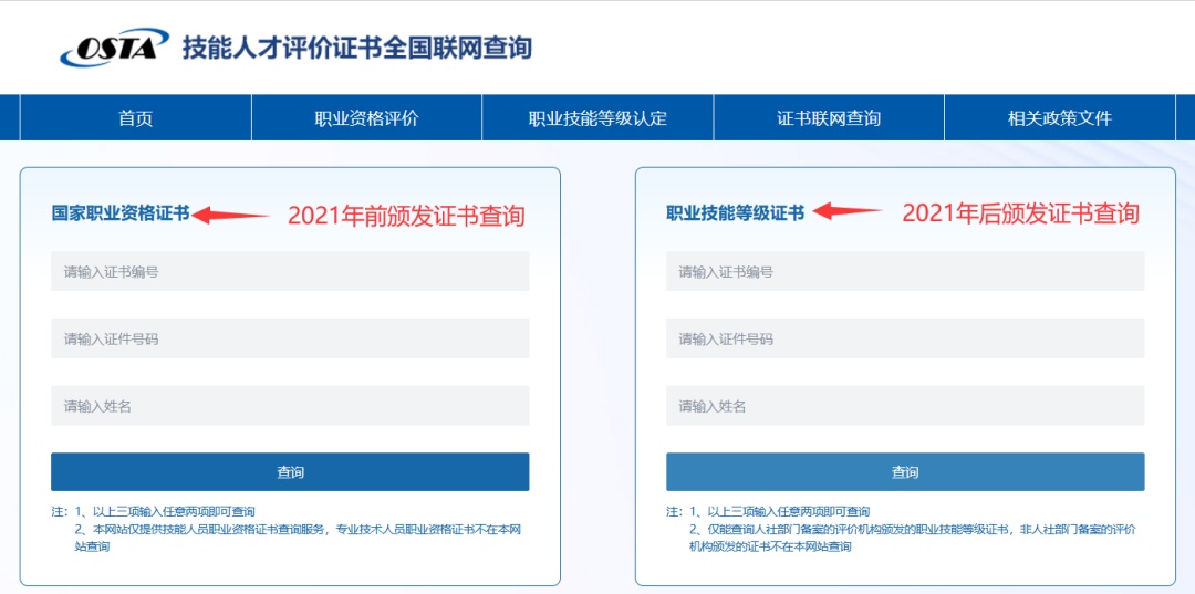 证书查询:上海市人力资源和社会保障局、国家人力资源和社会保障部技能人才评价证书(原“国家职业资格证书网”更名)全国联网查询:https://zscx.osta.org.cn/