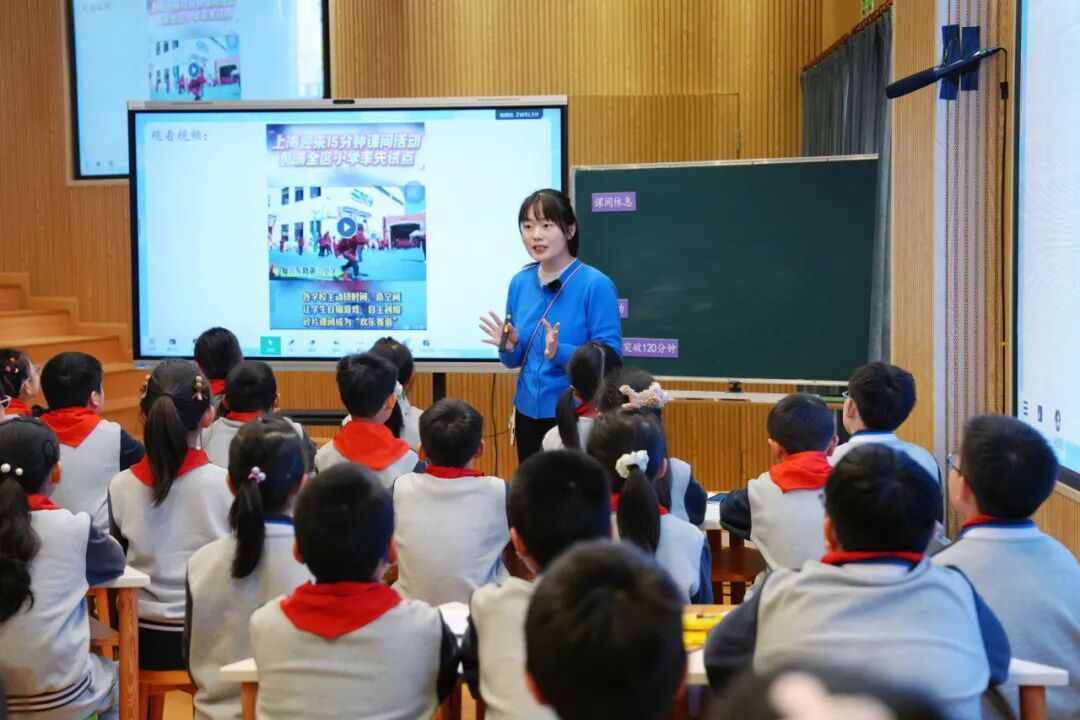 “课间15分钟”落地以来,学生的课表发生了变化,其中也藏着数学知识。走进黄浦区北京东路小学的四年级课堂,数学教师徐诗韵用这一校园热点作为引入,引导学生找一找课间休息的时间段,学习时间的计算。