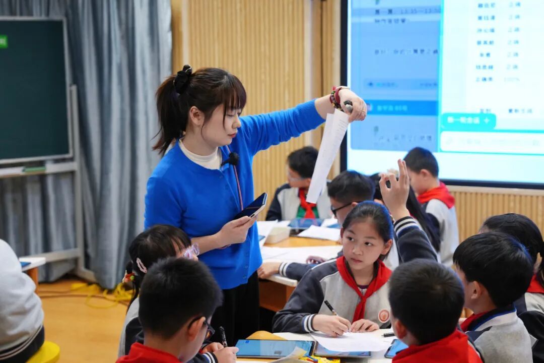 课后,黄浦区教育学院科研员江欣怿做了点评:“信息技术的介入,让学生的不同解法多样地、同频地、直观地呈现出来。课堂中,实现了师生互评、学生自评以及AI的评价,实现了评价方式和主体的多元化。评价的意义不在于给学生划等级、打分数,而是通过教师精心设计的活动,在每一次适切的评价中,帮助学生找到适合自己的学习路径。”