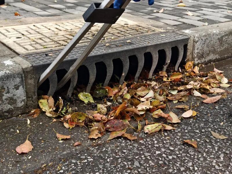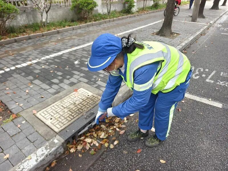 落叶场景看上去温馨浪漫,但是如果不及时清扫,也会对市民出行产生一些影响。例如香樟树叶和掉落的浆果铺在地上,可能会造成打滑,落叶堆积在下水道口,可能造成下水口堵塞、排水不畅。对此,淞宝项目组在清理完路面和人行道落叶之后,还安排人工对一个个下水道口进行清理,做到“未雨绸缪”、不留隐患。