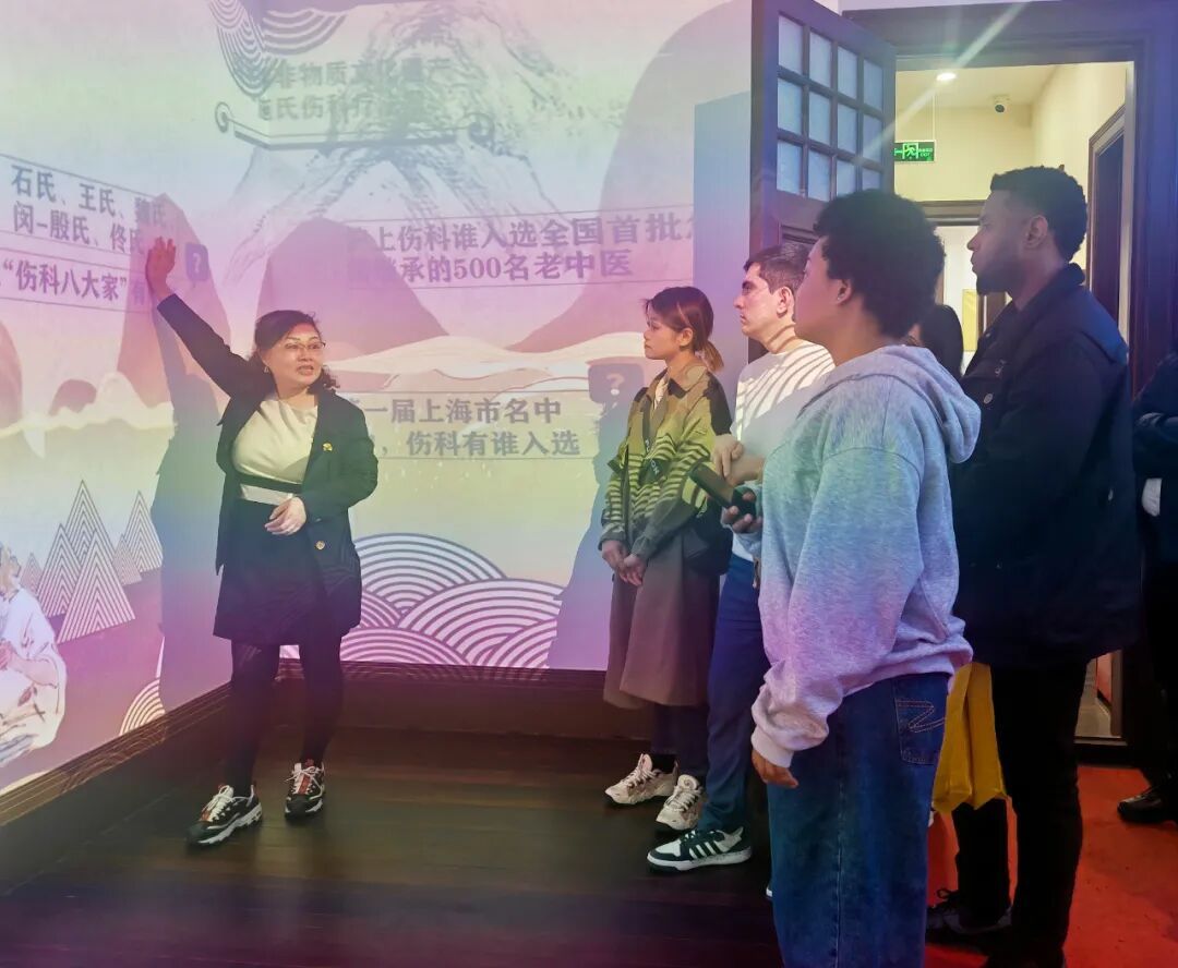 复兴中路510号作为黄浦区中医药文化消费场景的重要支点,以“岐黄传香”为主题,巧妙地将海派中医深厚的历史底蕴与现代体验元素相融合。留学生们踏入基地后,开启了一场丰富多彩的参观之旅。在中艺文创展区,他们被各种融合中医药元素的创意作品吸引,感受着传统与现代碰撞出的奇妙火花;在体质检测区,通过专业的检测设备,他们了解到了自己的身体状况,对中医“治未病”的理念有了更直观的认识;药膳体验区里,一道道精心烹制的药膳散发着诱人的香气,让大家品尝到了中医药与美食完美结合的独特风味;施氏伤科文化展示厅则向他们展示了海派中医在伤科领域的卓越成就和独特技艺。