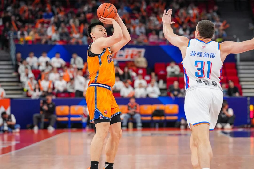 第二节两队形成相持,大鲨鱼进攻命中率一般,李弘权投中压哨三分,上半场主队以54比44领先。