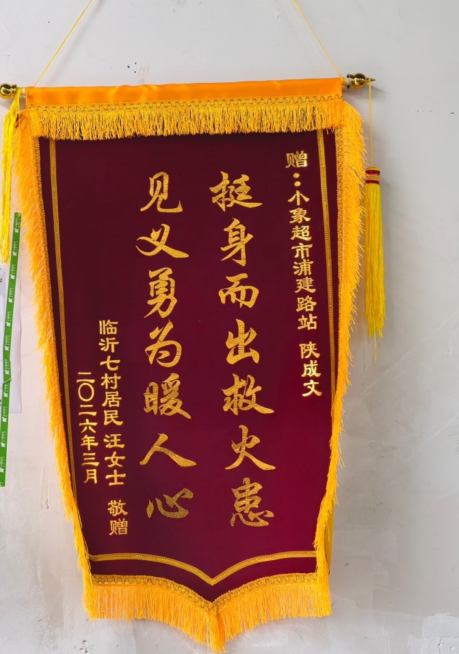 汪阿姨激动得不行,马上在附近做了锦旗。3月中旬的一天,她拉着闺蜜专程来到站点,向陕成文致谢。