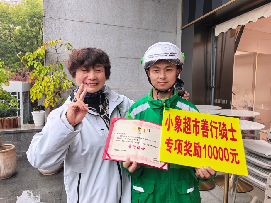 小象超市为鼓励陕成文的善举,特地为他颁发“善行骑士”荣誉证书,并给予1万元专项奖励。汪阿姨说,自己一定要来现场见证:“他是我的贵人,我要好好向他致敬!”