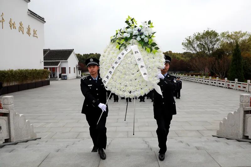 民警代表缓步上前,向革命烈士敬献花圈。挽带轻垂,寄托着对英烈的无尽哀思与崇高敬意。