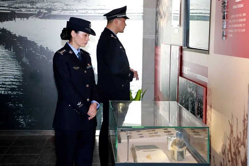 随后,在讲解员引导下,民警们有序参观烈士陵园纪念馆,近距离瞻仰烈士遗物、历史照片和文献资料。一幅幅泛黄影像、一件件珍贵文物、一段段详实记载,生动再现了革命先辈在艰苦卓绝的岁月中,为民族独立、人民解放而英勇奋斗的壮丽史诗。