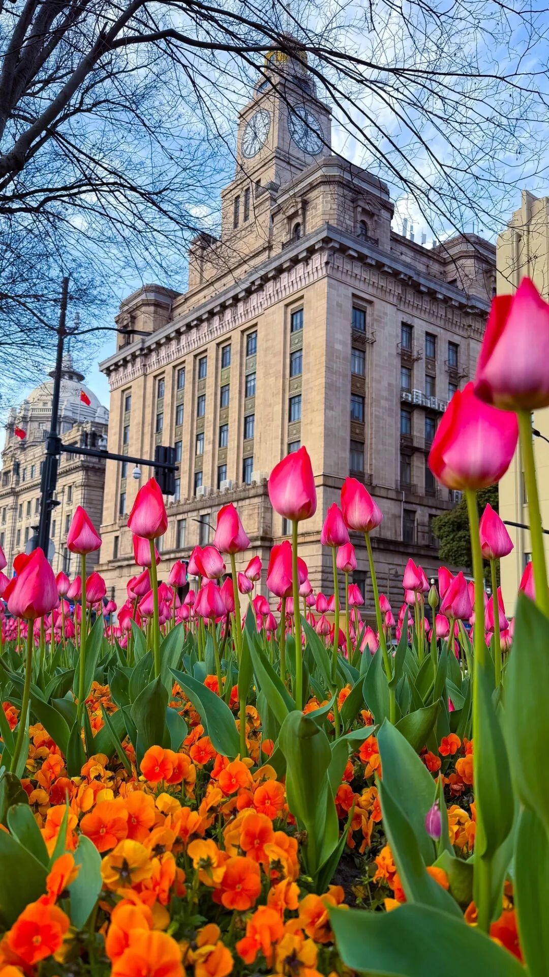春风吹暖黄浦江,总有一份浪漫属于外滩的郁金香!今年的“花路”已上线,低角度仰拍海关大楼、漫步中山东一路……这些绝美机位你都解锁了吗?趁花期正好,快去邂逅你的“繁花”世界~ 春风拂过黄浦江,外滩的郁金香终于如期绽放啦~江风轻拂,花香萦绕,这才是上海春天该有的样子。 从外白渡桥到中山东一路,大片郁金香铺成绚烂花带带来了花香和泥土的清新味道,让人心旷神怡。 一边是百年历史的万国建筑群,一边是摩登璀璨的陆家嘴三件套,一年一度郁金香绽放之时,外滩沿线再次成为上海热门打卡地。 从外白渡桥开始Citywalk的旅程,郁金香将上海大厦、和平饭店等映衬得更有韵味,描绘出一幅优雅的画卷。置身其中,穿梭过往,重游“繁花”世界。 老建筑见证着上海外滩变幻生长,在光阴的履新中诉说着江畔的昼夜繁华,悄然盛放的郁金香,让这里再度成为申城的焦点,行走间宛如踏入五彩缤纷的梦幻世界。 各色郁金香组成条带铺设成无边花海,以特有的方式,加入申城的春天。 低角度仰拍,轻松把海关大楼的复古建筑与郁金香同框,复古建筑搭配粉色温柔色系的花朵,自带浪漫滤镜。 走走停停,漫步中山东一路,感受摇曳在光影中的万国老建筑夜晚,万花如海闪烁在光影中,演绎另一重繁花胜景。 郁金香点缀着外滩春天里最生动的倩影,仿佛与每一位行人约定好,要在每年春天准时相见,快来奔赴这场限定的春日浪漫吧~ 外白渡桥 外滩1号久事美术馆 和平饭店 外滩18号 海关大楼 – END – 资料:上海发布 编辑:何清扬 责任编辑:邱菲菲 来稿请投:zjwxwxczx@163.com 上海市住房和城乡建设管理委员会新闻宣传中心