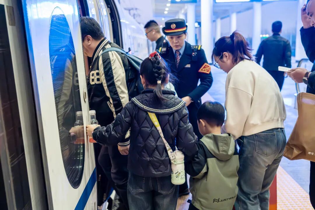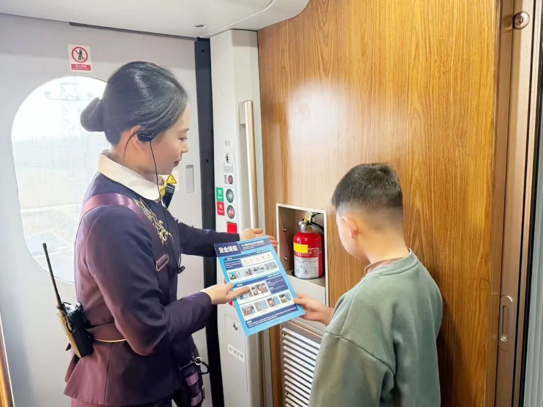 南京客运段聚焦“一大一小”重点出行群体,在儿童旅客较多的车次和区段,加密儿童乘车安全广播提示频次,加强车门口乘降组织,对儿童单独行走、家长携带多名儿童等情况及时提醒、主动帮扶,同时为部分列车配备文创拼图等益智玩具,发放图文并茂的儿童乘车安全提示卡,细致服务守护假期旅途。