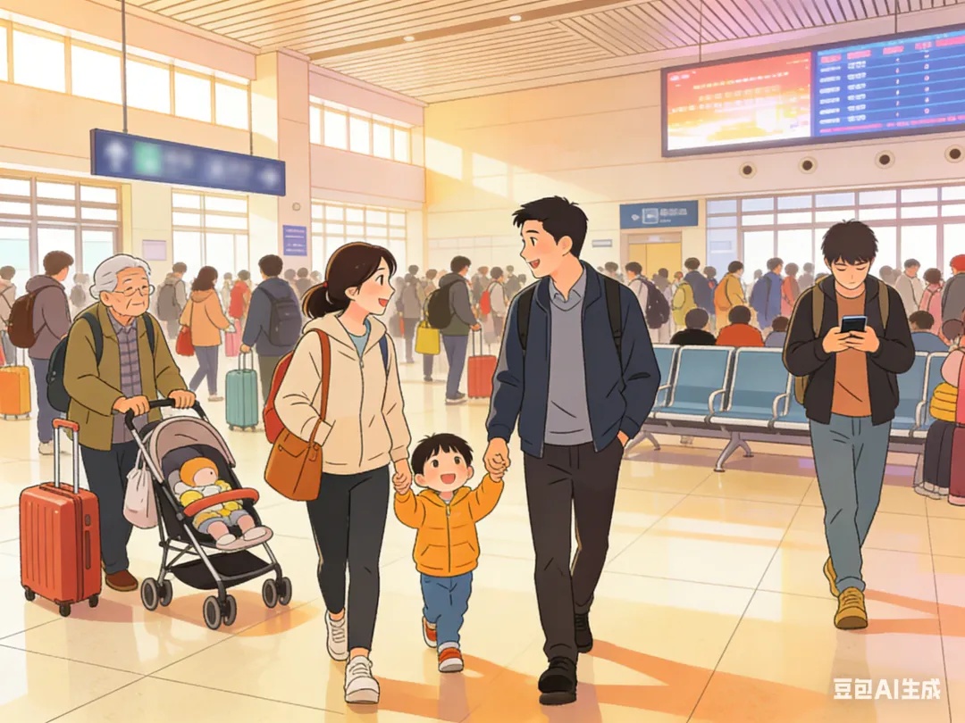 进站口客流密集,切勿因整理行李、刷证核验、接打电话等分心,让孩子脱离视线。建议家长提前准备好证件,化零为整收纳行李,始终将孩子护在身前,避免孩子在人群中走失、被挤倒。