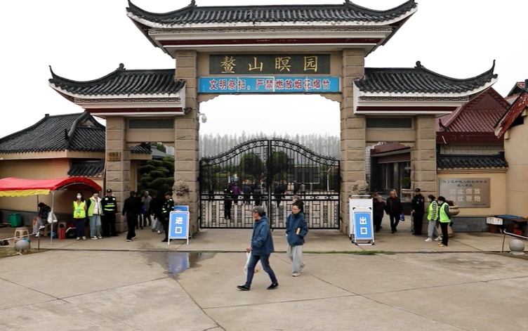 在鳌山瞑园入口处,祭扫市民在民警、志愿者和园区工作人员的引导下有序进入墓区。记者看到,不少市民选择用鲜花、水果、青团等祭品代替传统纸钱,有的鞠躬行礼,有的低声倾诉思念,现场庄严肃穆,处处寄托着对已故亲人的哀思。