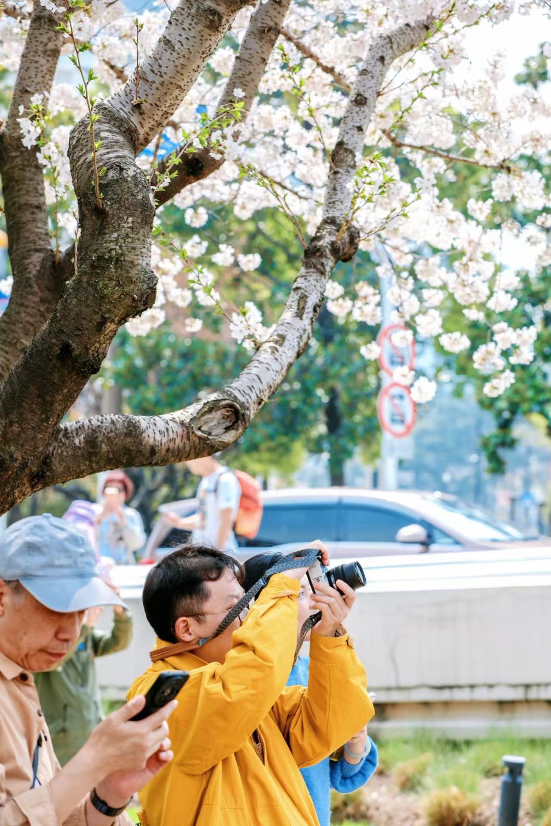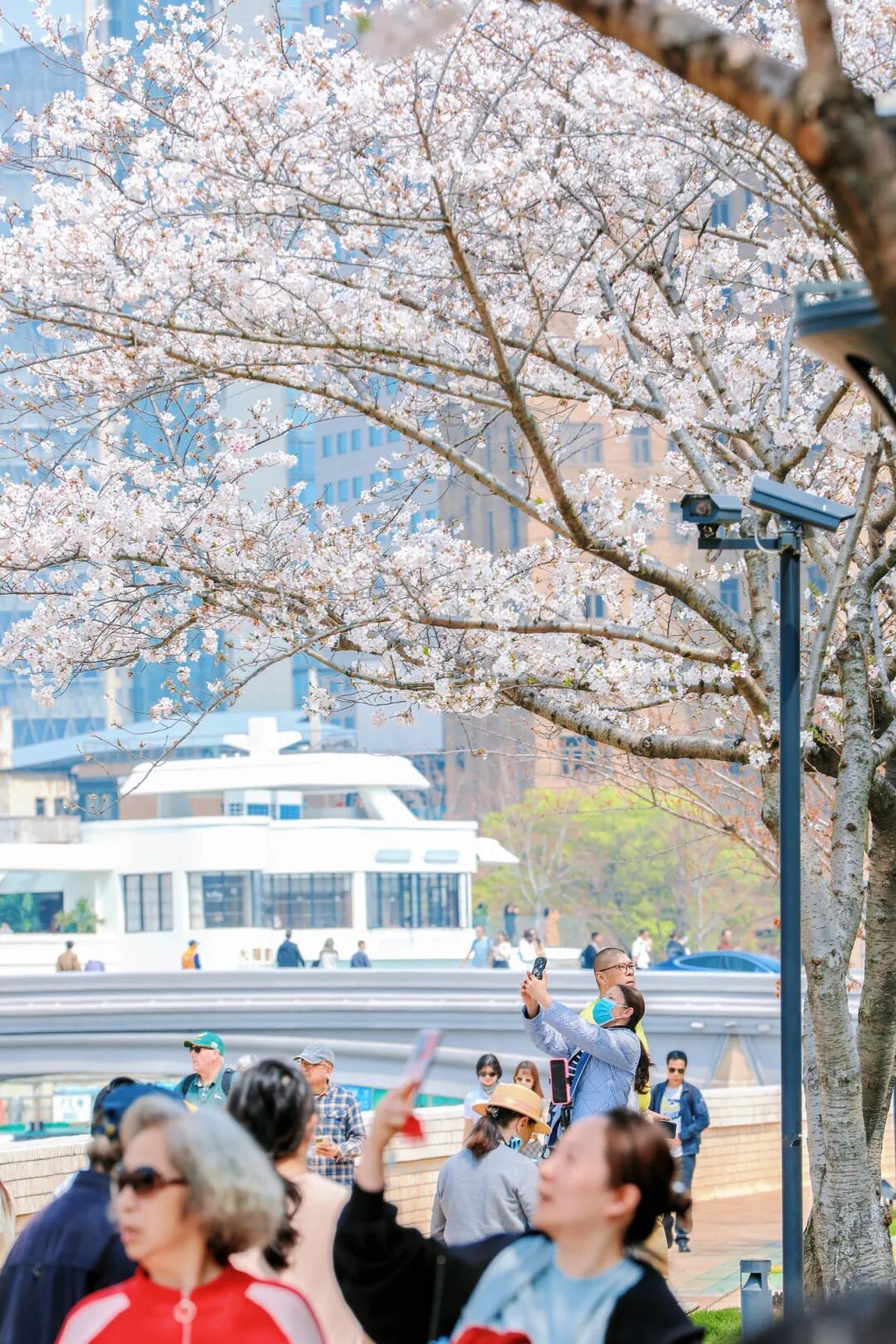 “以前看樱花要去顾村公园,没想到现在在家门口的苏州河边就能拍到这么美的风景。”一名正在拍照赏樱的游客兴奋地说道。