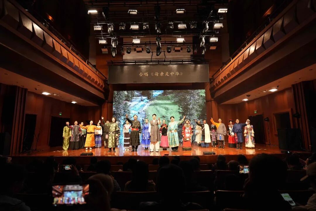 音乐会后半程,《北京的金山上》《崴萨啰》《酒歌》等歌曲联唱轮番上演,各民族欢歌热舞接连呈现,现场气氛热烈非凡。全体演员与观众齐声合唱《母亲是中华》,将音乐会推向情感高潮,“五十六个民族亲亲一家,就像百花园里盛开的花”的铿锵旋律,唱出了各民族儿女对祖国母亲的赤诚热爱,诠释了各民族像石榴籽一样紧紧抱在一起的紧密联结,让铸牢中华民族共同体意识的理念在歌声中深深扎根。