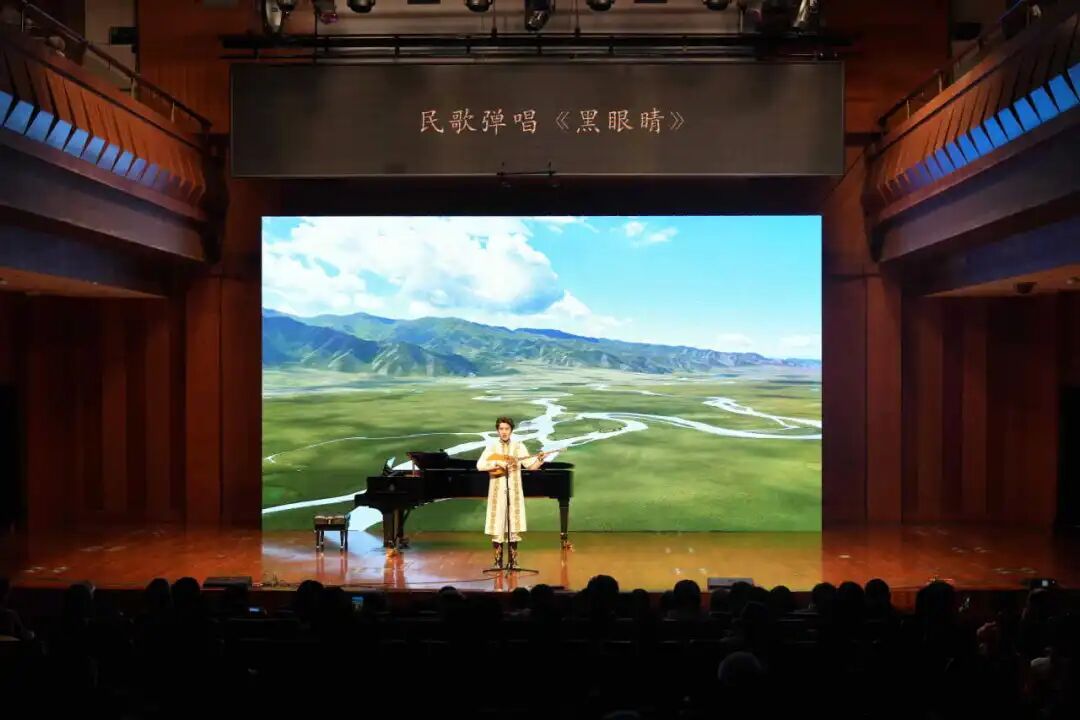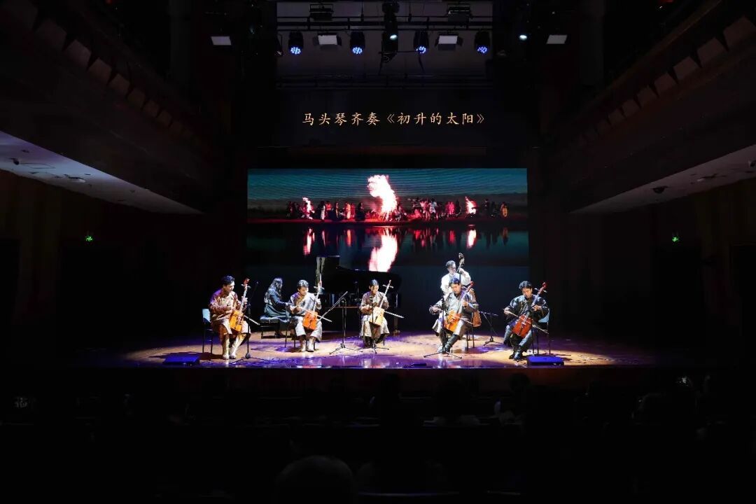 音乐会紧扣民族团结进步主题,让各民族艺术瑰宝在舞台上精彩绽放、互鉴交融。一曲打击乐《云之南》描绘云南火把节的狂欢盛景,为音乐会拉开序幕;国家级非遗民族舞蹈《阿妹戚托》以铿锵踢踏叩击心扉,八音坐唱《贺喜堂》以婉转丝竹传递喜悦,马头琴演奏的《初升的太阳》勾勒草原辽阔,冬不拉弹唱《黑眼睛》诉说深情,《潘吉尕木卡姆》片段展现古老乐舞的独特魅力。各民族艺术形式同台竞彩,尽显中华文化多元一体与博大精深。这正是“各美其美、美美与共”理念的生动体现,是增进各民族文化互鉴融通、鼓励各民族互相欣赏优秀传统文化、互相学习语言文字的艺术实践,凝聚了构建中华民族共有精神家园的文化共识。