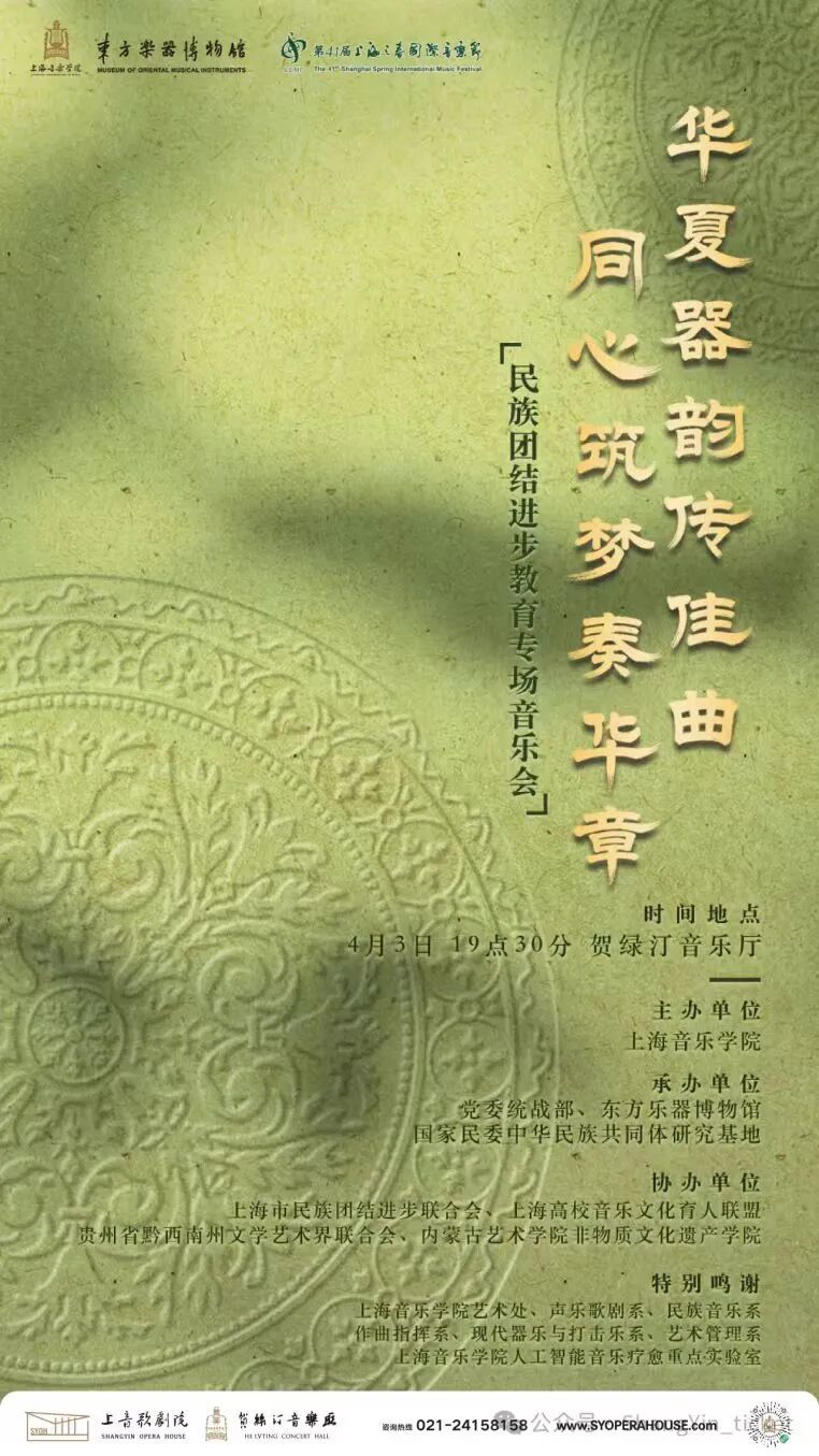 4月3日,“华夏器韵传佳曲同心筑梦奏华章——民族团结进步教育专场音乐会”在上海音乐学院贺绿汀音乐厅圆满落幕。本场音乐会作为第41届上海之春国际音乐节系列活动之一,以音乐为媒、以艺术为桥,融汇多民族艺术精粹、贯通传统与创新表达,生动诠释“中华民族一家亲”的深厚情谊,为铸牢中华民族共同体意识注入鲜活的文化力量。