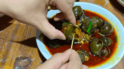 用牙签掏出螺肉