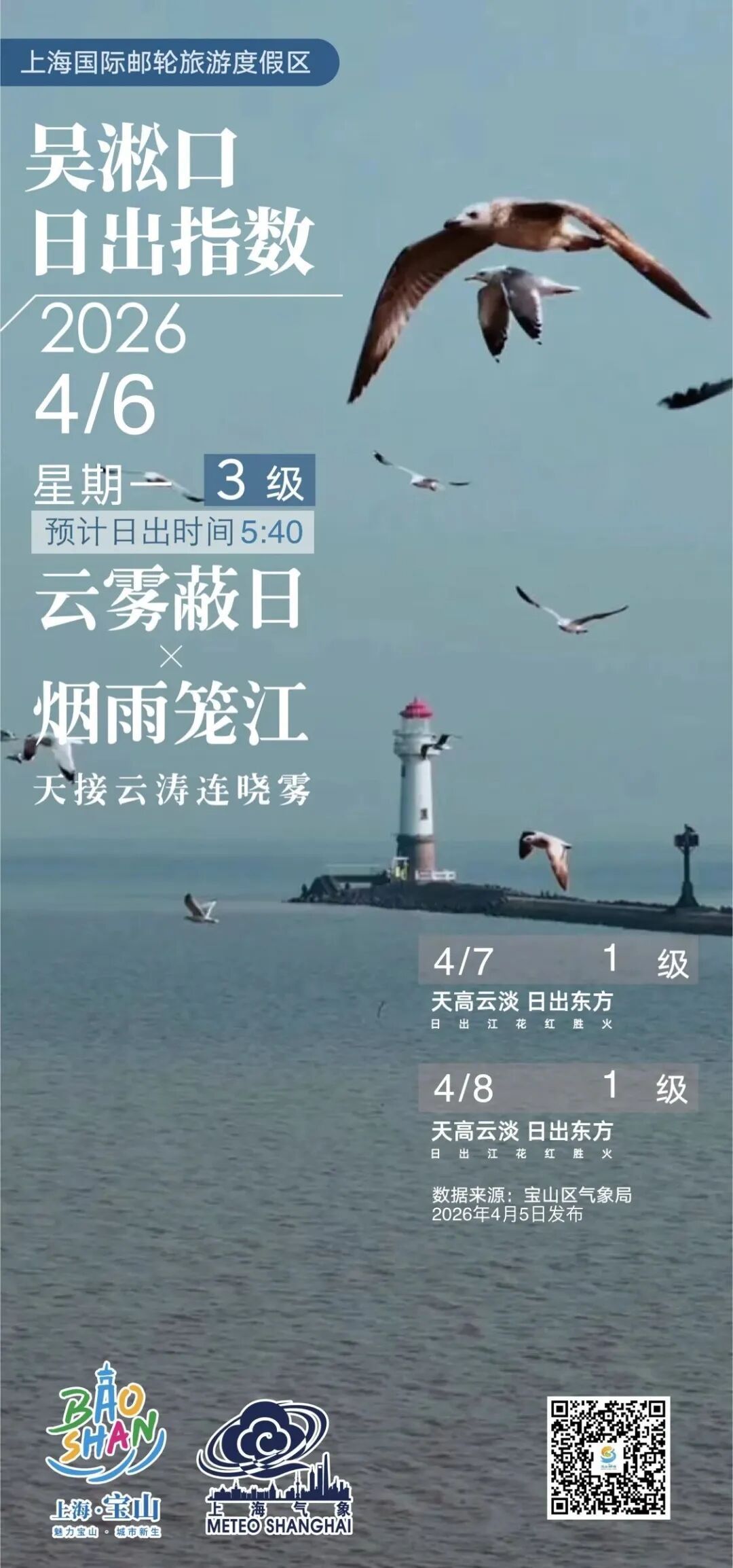 【吴淞口日出指数】4月6日3级 云雾蔽日×烟雨笼江