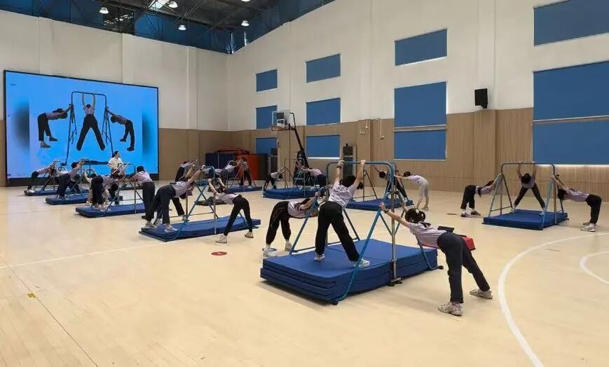 小编了解到,这些学生并不是体操特长生。学校为何会在日常的体育课上做这样的尝试?这一项目锻炼到孩子的哪些技能?
