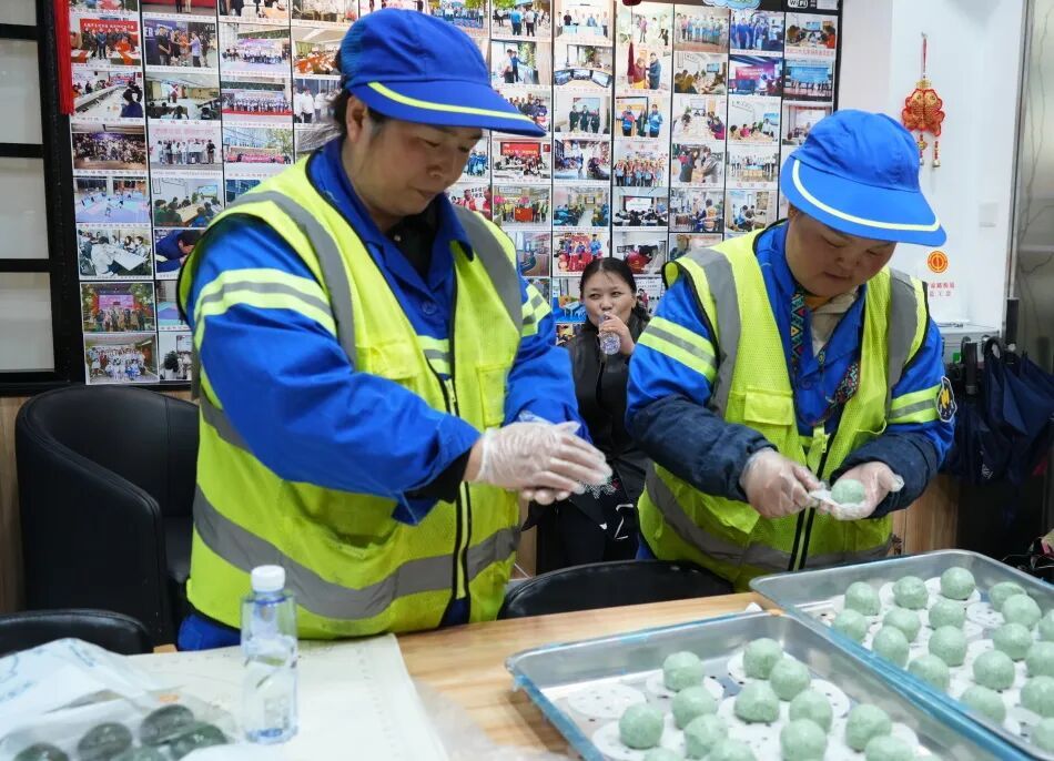 在殷行街道幸福家睦邻中心,闸殷街区党支部开展“清明寄情,邻里暖‘新’”主题团康活动。大家亲手制作青团,并送至殷行街道第三街区网格内的顺丰速运小哥手中,为风雨无阻奔波在一线的“城市摆渡人”送去春日温情。