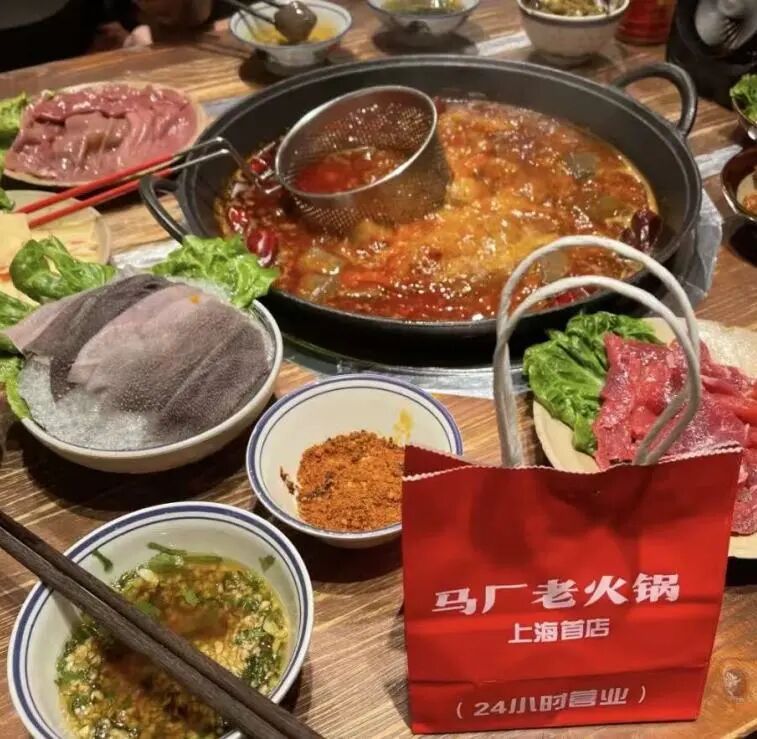 当夜幕降临,场北路的另一面开始苏醒。马厂老火锅里红汤翻滚,麻辣鲜香的气息透过门缝钻出来,勾引着路人的味蕾。