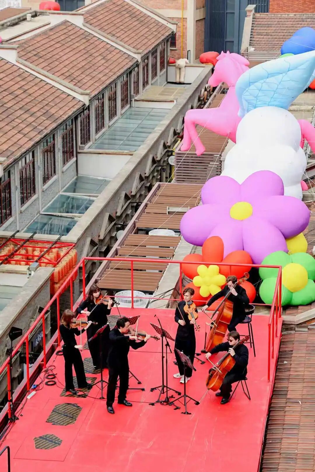 甜爱廊观景露台与弄堂地面处处是观众。“看一场花海里的弄堂屋顶音乐会,氛围实在太好!”成为不少观众的共同感受。尤为特别的是,滨港商业中心今潮8弄打造户外人宠友好观演环境,打破传统演出的受众边界,“人宠共赏音乐会”尽显上海城市温度。