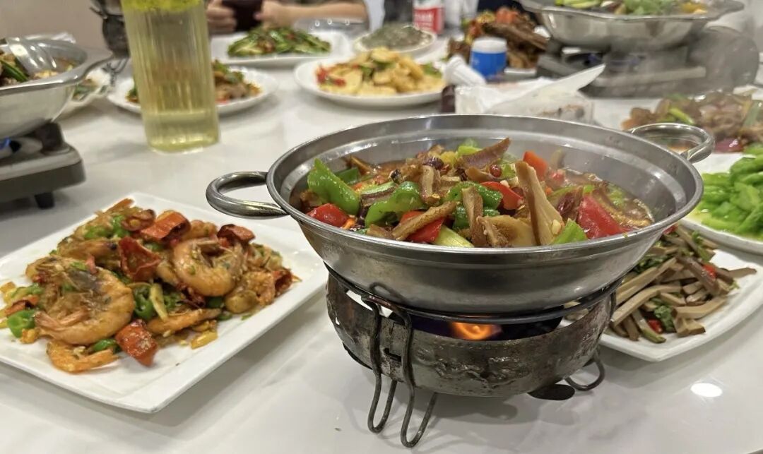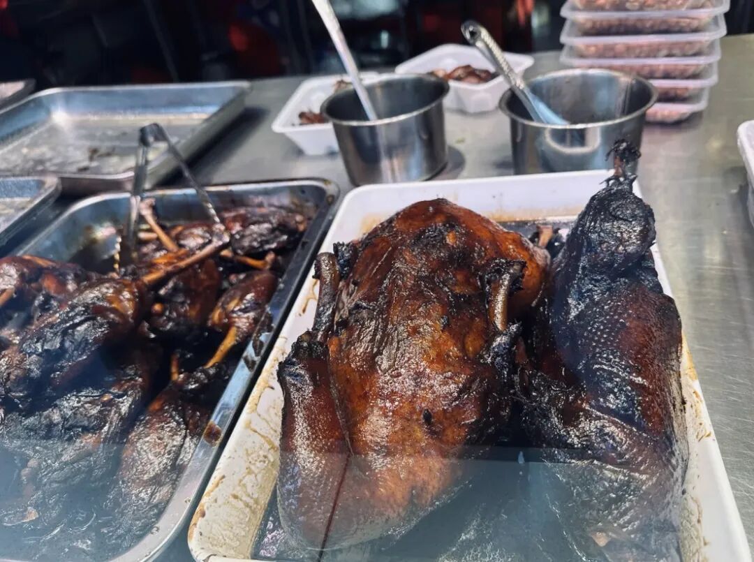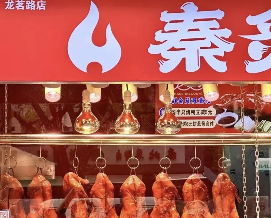 在闵行区龙茗路,一位福建老板把许多人念念不忘的家乡美味搬来了上海,开了一家叫作闽上皇姜母鸭的小饭店。姜母鸭是闽南传统佳肴,有干湿两种流派,各有风味,这家店主打湿姜母鸭,口味更加湿润软糯。作为泉州当地的一道名菜,姜母鸭选用红面番鸭和老姜(姜母)为原料,色香味俱全,带来正宗的闽南风味。砂锅端出来的鸭肉煮得软烂入味,肉质带有一丝丝甜味,一咬轻松脱骨。配上姜片的微辣,鲜香入味,很是下饭。闽南风味的特色小吃五香卷也打开了许多食客的新世界。豆皮裹着猪肉,经过油炸之后,表皮金黄酥脆,肉感紧致有嚼劲。沾上酸梅酱,好吃又解腻。老板还自制了许多闽味卤味小吃,既有鸭脖、鸭掌、鸭翅等鸭货,也有凤爪、门腔、牛腱等其他经典卤味,外卖或者自提带回家解解馋也很不错。作为一家藏在居民区里的闽北浦城土菜馆,三味馆灰瓦青砖、灯笼垂挂的门头让人别具亲切感。不少福建老乡冲着这口家乡味道而来,吃完更是直呼“回家了”!当地人偏爱以山野河鲜做菜品,相较于闽南,闽北菜系调味偏辣。这家店不少食材都是从家乡运来的,辣度也根据上海口味进行了调整。民间笑谈:“没有一只鸭能离开福建”。吃鸭对于福建人来说,不仅是美食,更有压制邪气的美好寓意。三味馆里就有板鸭锅、鸭血煲、椒盐鸭头、老鸭汤等多种做法。板鸭锅里满满当当一大锅,深褐色的板鸭加上各类佐料,咸香味十足。提前腌制过的板鸭自带烟熏香气,肉质紧实有弹性。还有慢火久炖煲出来的老鸭汤,鲜美是一绝。一碗下去,整个人都精神起来了。坐落在古美生活购物广场的秦炙火果木烤鸭店招牌亮眼,上面就是大型超市,不少居民购物后会来这里买一份烤鸭尝尝。明亮的橱窗里,一只只烤鸭泛出金黄的色泽,饱满有料,看得人垂涎欲滴。师傅麻利地将鸭子片皮,薄薄的肉带着皮的油脂,肥瘦相间。小麦粉做成的面皮有劲道,一张小饼可以包下万物。摊开面皮,把鸭肉沾上甜面酱汁,再夹上一些黄瓜、葱丝,一把塞入嘴里,美味四溢。椒盐特调的鸭骨架也别错过,焦香味道足够馋人,一口下去脆脆的,好吃得让人嗦指头。店里还有本邦口味的酱鸭,酱汁卤得很入味,一眼浓油赤酱的地道风味,周边的居民们经常会来买上半只,给晚饭加餐。