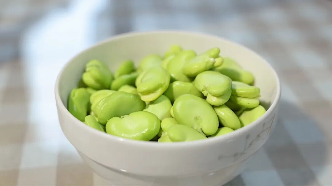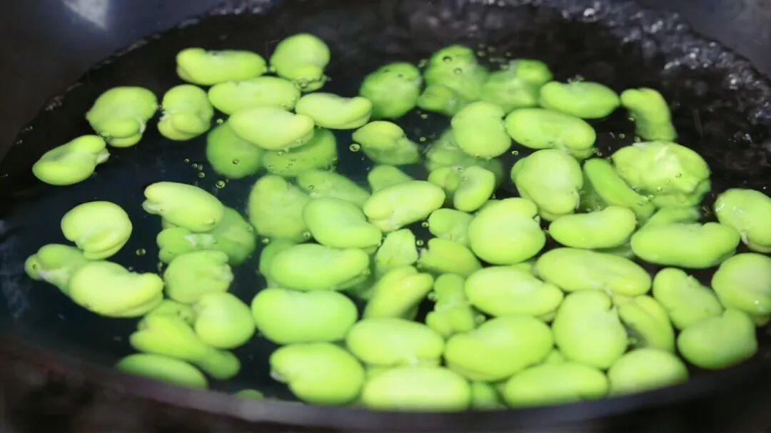 3.蚕豆剥去外皮,焯水一分钟捞出;
