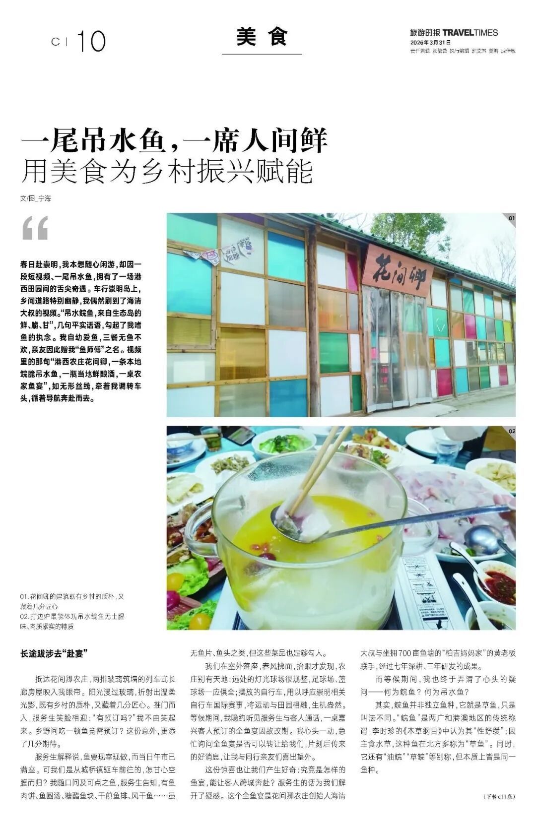 春日赴崇明,我本想随心闲游,却因一段短视频、一尾吊水鱼,拥有了一场港西田园间的舌尖奇遇。