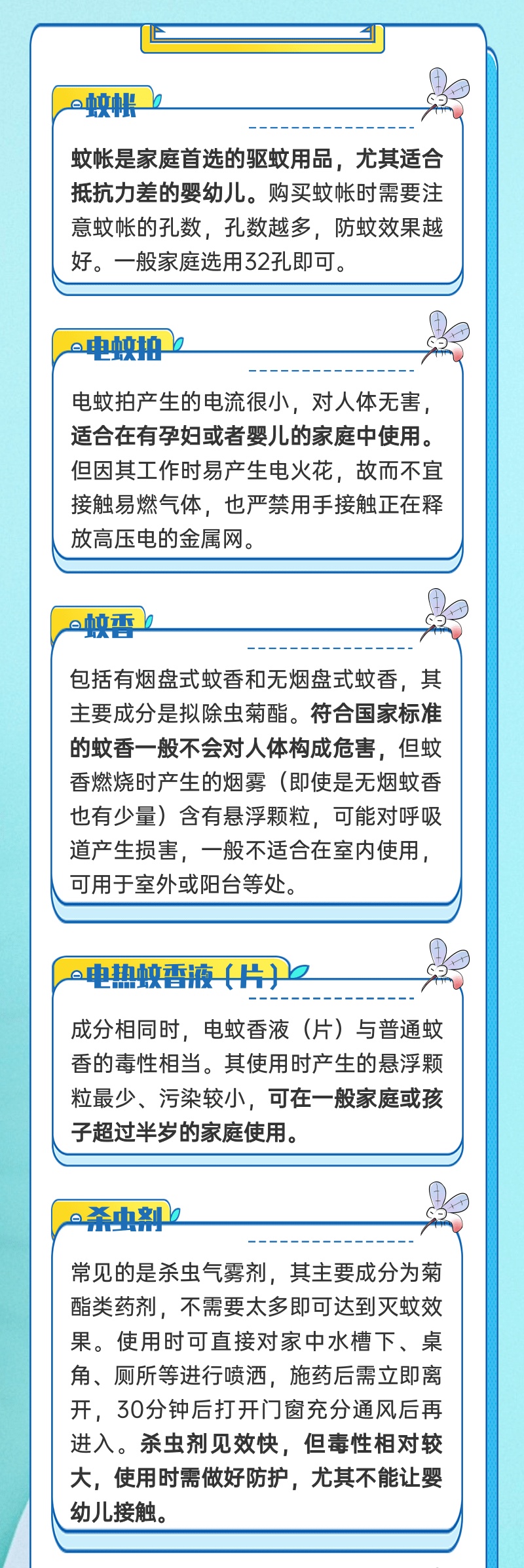 有婴幼儿和孕妇的家庭,首选物理驱蚊,如蚊帐和电蚊拍等。