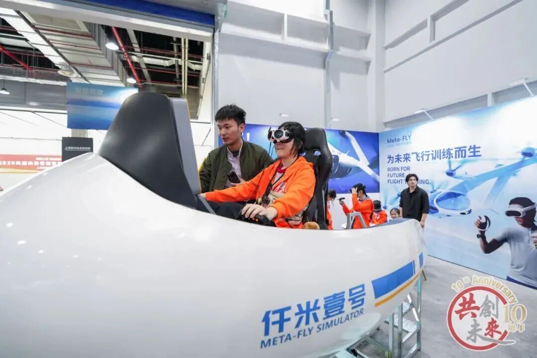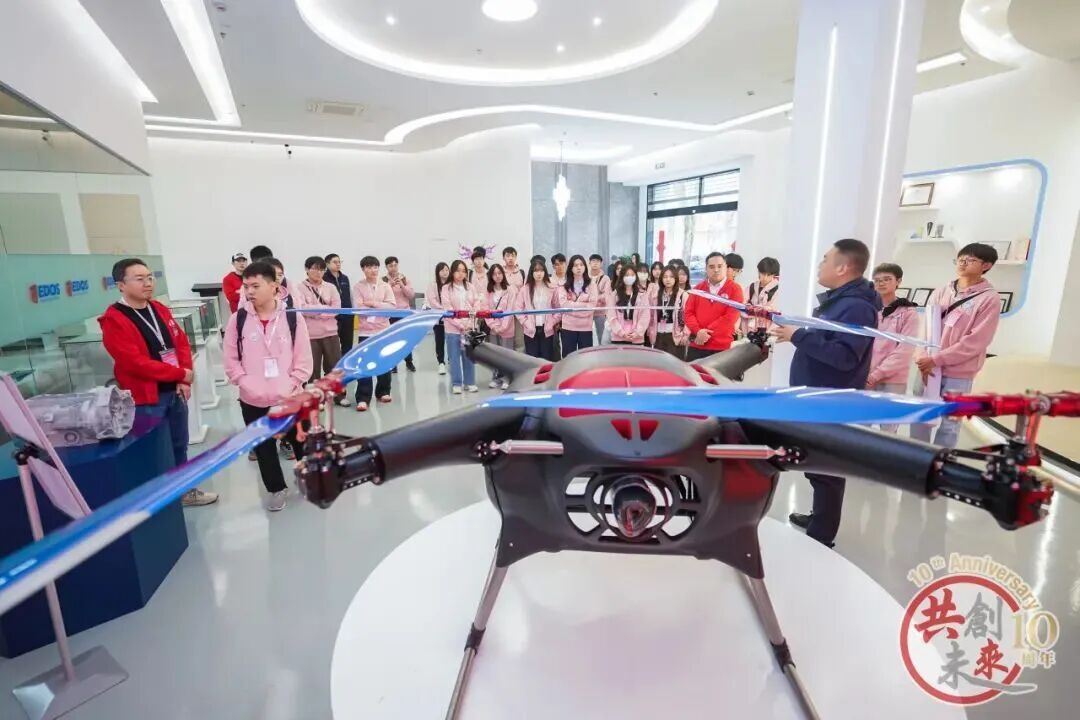 抵沪首日,在上海通用航空协会和虹桥品汇的支持下,团组全员师生走进虹桥长三角低空经济展贸中心,沉浸式体验 eVTOL 飞行模拟器、桌面飞行操控、无人机表演等,在展厅中近距离感受低空科技魅力。