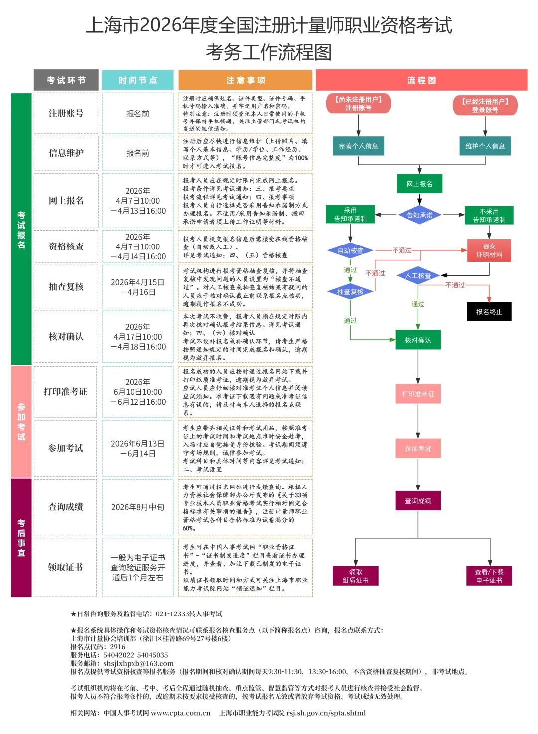 考试报名证明事项推行告知承诺制。考试机构将对报考资格进行抽查复核并接受社会监督。报考人员应积极配合考试机构的核查,及时提交相关证明材料,报考人员不符合报考条件或逾期未按要求接受核查的,按考试报名无效或者放弃考试资格、考试成绩无效处理。