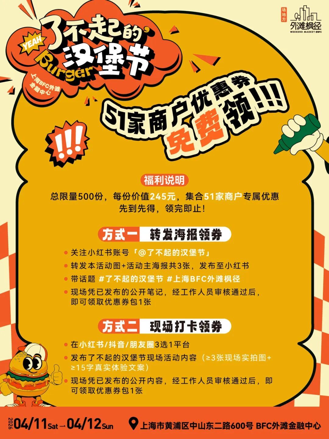 限时2天,全国「顶流」汉堡集结!17城的汉堡天花板来外滩PK实力!