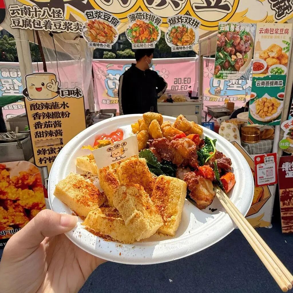 焦糖凤梨果蔬牛肉粒、云南包浆豆腐