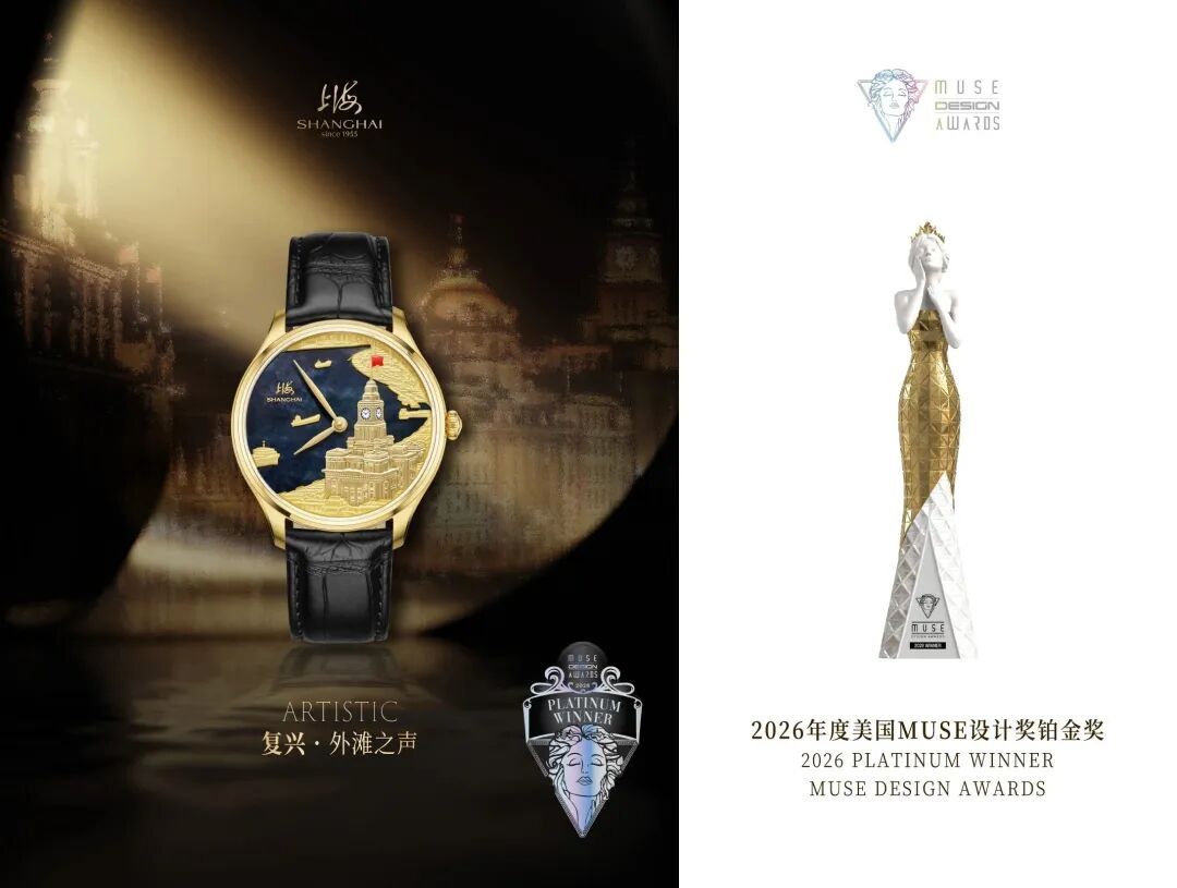 近日,备受全球创意设计界瞩目的2026年缪斯设计奖(MUSE Design Awards)获奖名单揭晓,上海表匠心之作“复兴·外滩之声 ”一举摘得“时尚设计类”最高荣誉铂金奖。这一殊荣不仅彰显了中国设计力量的卓越水准,也让来自上海杨浦的文化元素与东方时计美学在国际舞台大放异彩。