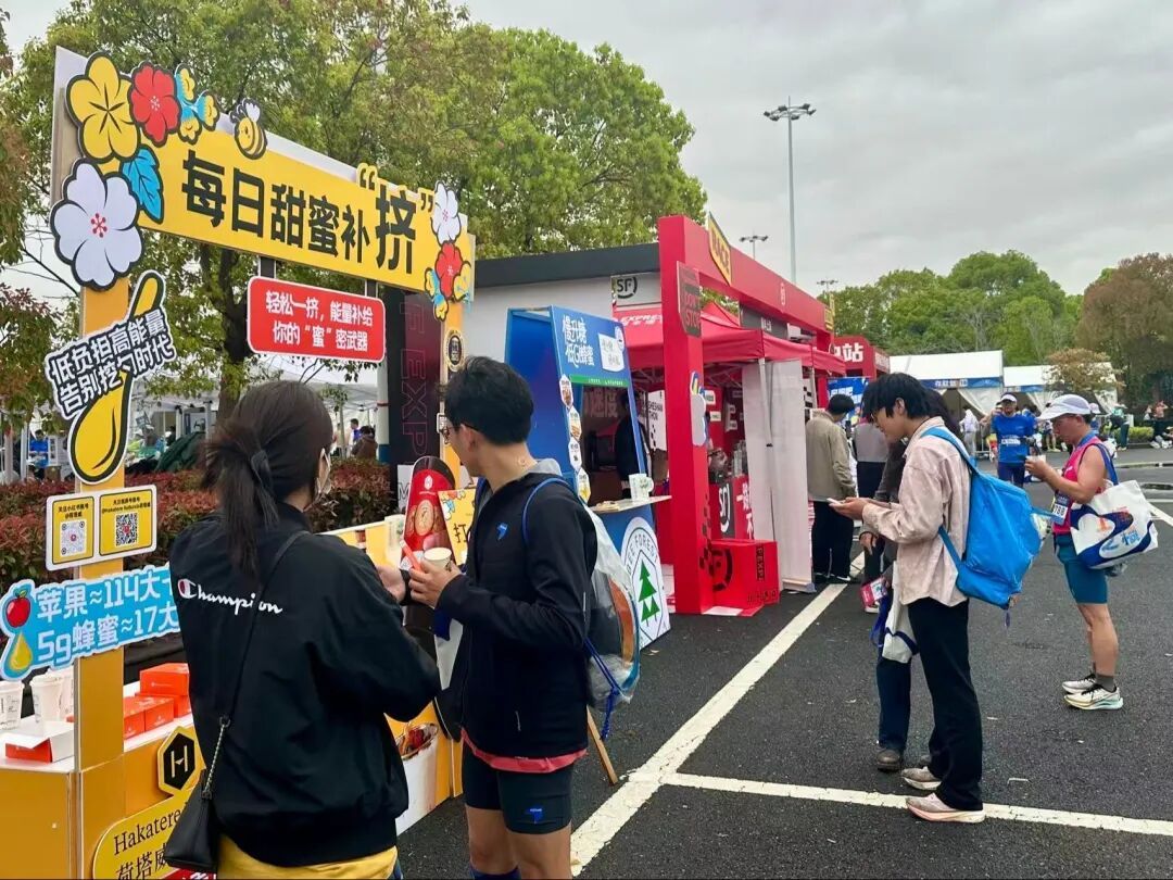 此外,多家企业展位在展示推广自身产品的同时,还贴合参赛运动员需求,提供赛后拉伸放松、号码布塑封纪念等便民服务。“我昨天领赛事包的时候,就把市集逛完了,薅到不少羊毛。”来自宁波的跑者吕洪波笑着说,“第一次中签佘山半马,体验感很好,从赛事包领取、沿途能量补给,到赛后服务、市集布置等各个环节,都做得既专业又贴心,希望明年还能来参赛。”