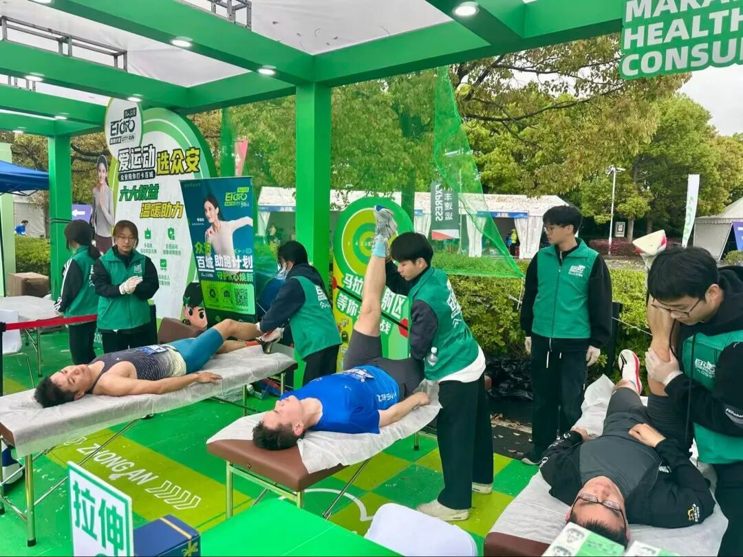 企业摊位设置帮助选手赛后拉伸服务