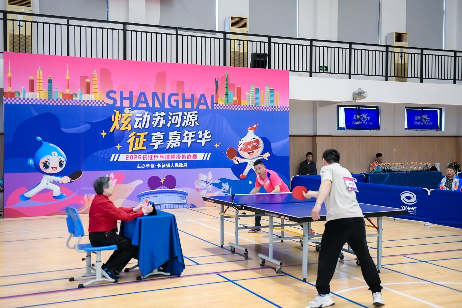 在长征中学高中部体育馆内,“炫动苏河源 征享嘉年华”2026长征乒乓球超级挑战赛总决赛氛围紧张激烈。此前从网格赛中脱颖而出的24位选手,与面向全镇公开招募的百余位乒乓高手同场竞技,共同奉献了一场高水准、充满激情的乒乓盛宴。比赛现场,混合双打、男子单打、女子单打、男子双打、女子双打五个项目依次展开角逐。选手们全神贯注,精彩的多拍对拉、巧妙的落点控制、果断的强势扣杀频频上演,观众席上掌声与喝彩声此起彼伏。值得一提的是,赛场上还有一群青春年轻的面孔,来自长征中学的一批爱好乒乓球的高中生作为参赛选手同台竞技,为比赛增添了活力与激情。经过激烈鏖战,各项目冠、亚、季军相继诞生。依托此次比赛,选手们以球会友,在切磋中进步,在交流中增进情谊,进一步展示社区凝聚力与拼搏活力。