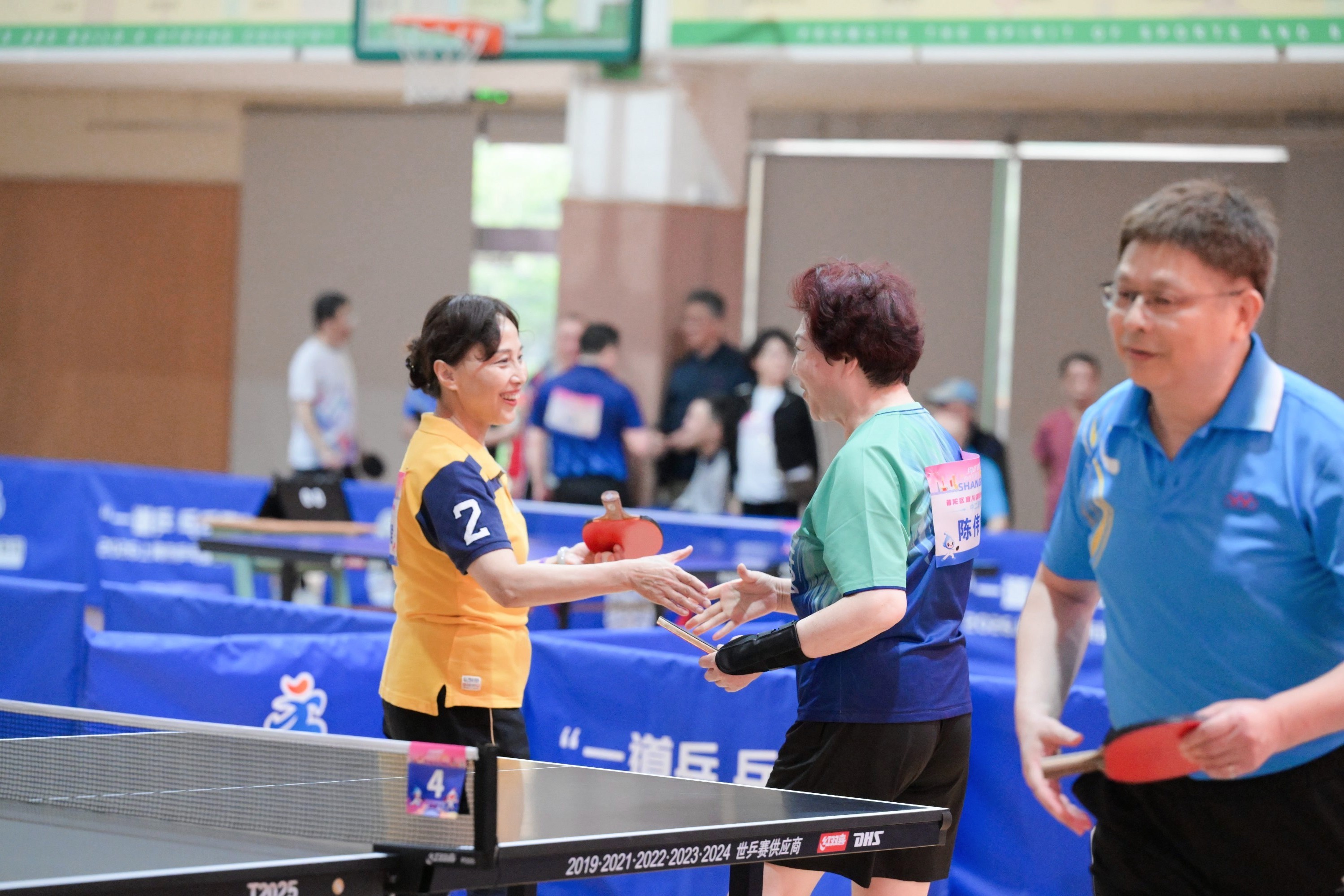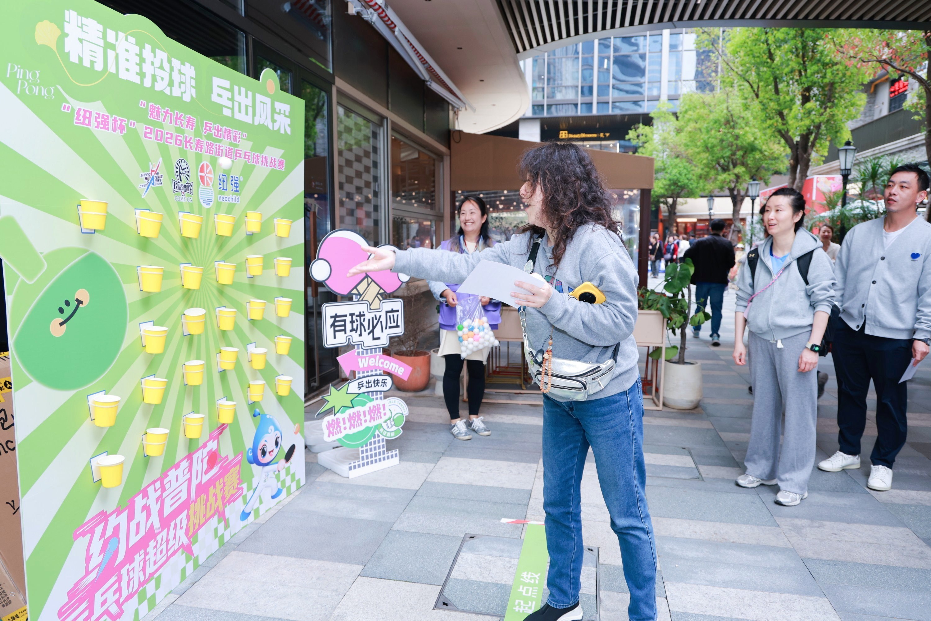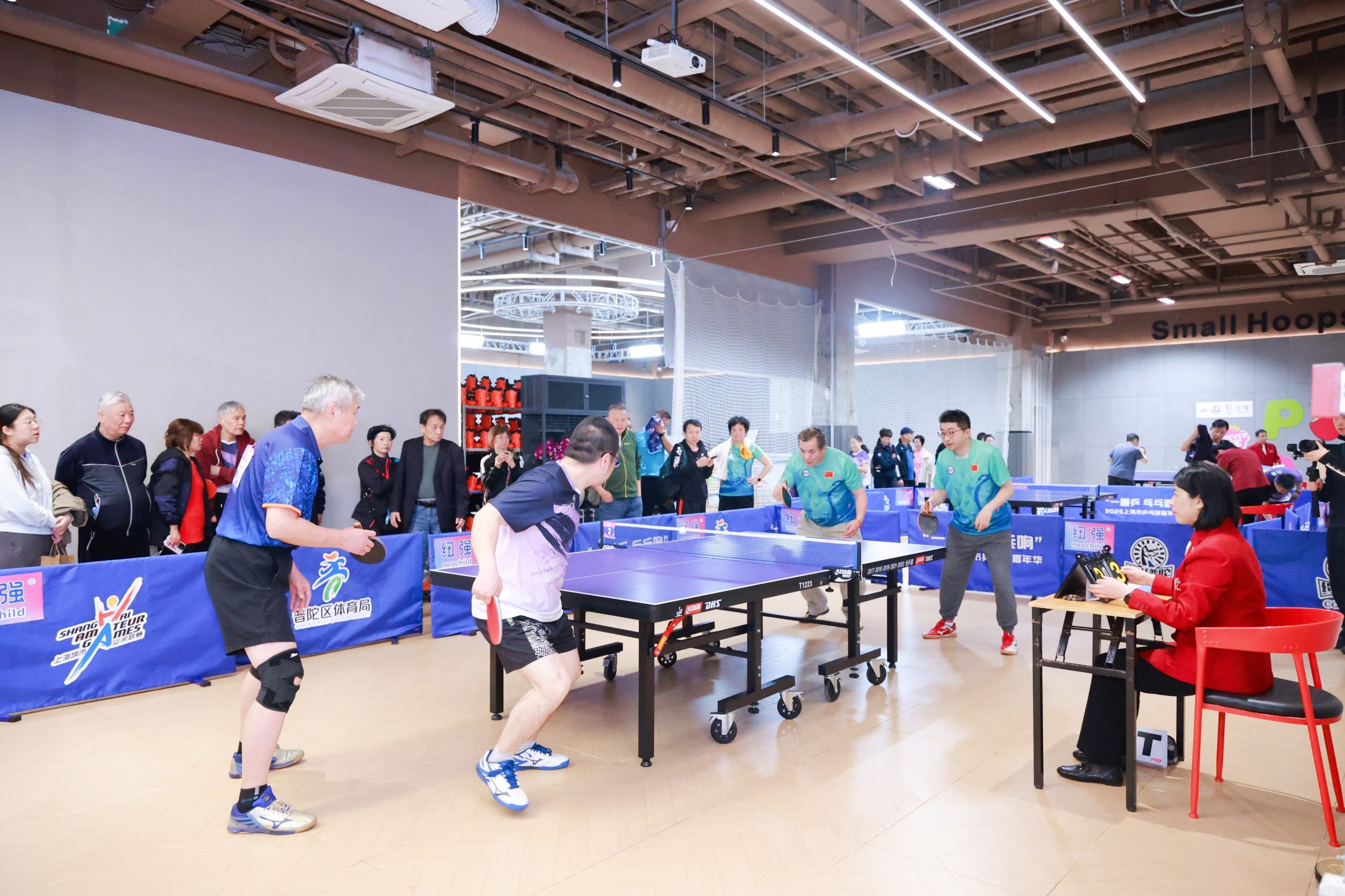 长风新村街道则将赛场搬进了商场内,设置在长风大悦城的赛场上,3张球台同时开战,击球声清脆密集,气氛紧张热烈。本次参赛的选手中,有退休多年的老将,有初出茅庐的少年,有坚持练球的上班族,更有来自外国的“洋居民”。赛事还携手众多社区商户共同参与,凭赛场集市摊位的集章卡不仅可以兑换精美的礼品,还能享受长风大悦城50余家商户的优惠折扣,这种以赛事为纽带激活的“票根经济”,串联起运动、文化、商业与旅游。