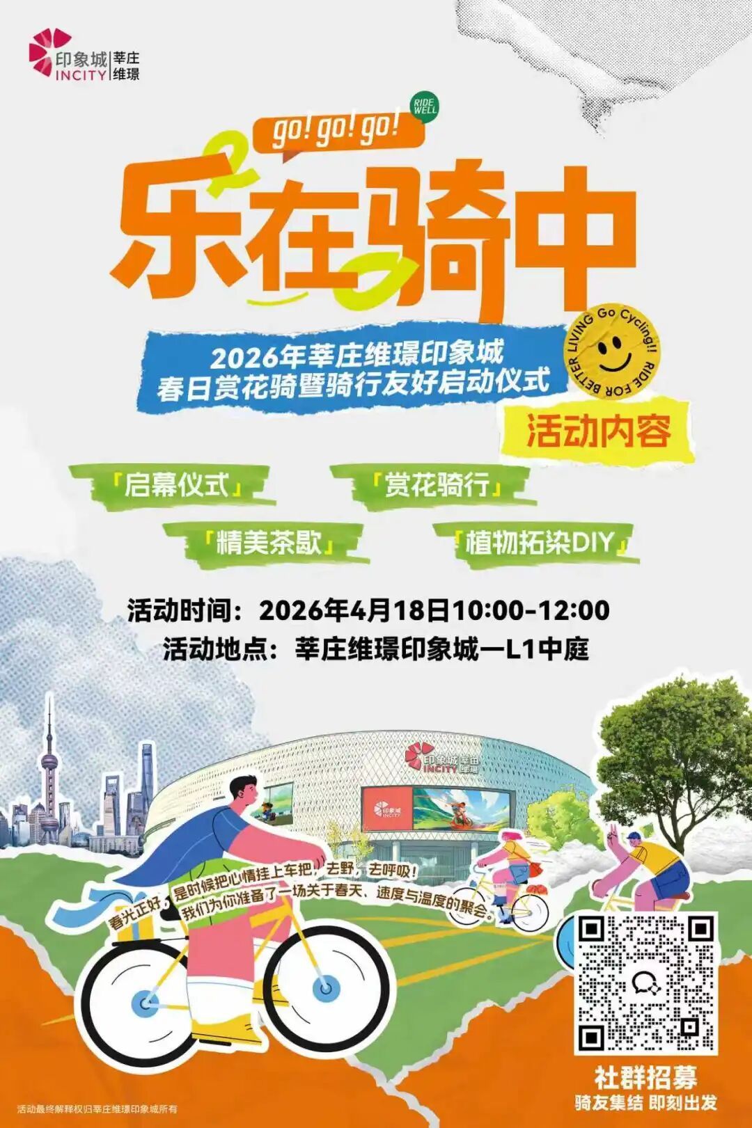 春意盎然的四月,正是走出家门、拥抱自然的好时节。4月18日至19日,闵行区莘庄维璟印象城商场将推出免费的赏花骑行活动,和奖品丰厚的宠物挑战赛,快来参加充满活力的春日盛宴吧!