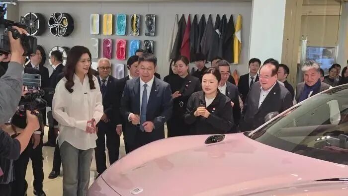 小米集团合伙人、总裁卢伟冰向郑丽文一行介绍了小米公司的发展情况,以及小米汽车的摩德纳技术架构等。在展厅里一台淡粉色的小米汽车前,郑丽文受邀上车体验,了解车辆的各项功能。