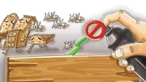 绝对禁止操作:千万别用普通家用杀虫剂狂喷!普通杀虫剂只能杀死表面的少量白蚁,不仅无法根治,还会惊散隐藏的蚁群,导致它们转移到家中更隐蔽的地方(比如墙体内部、家具深处),后续治理难度会大大增加。