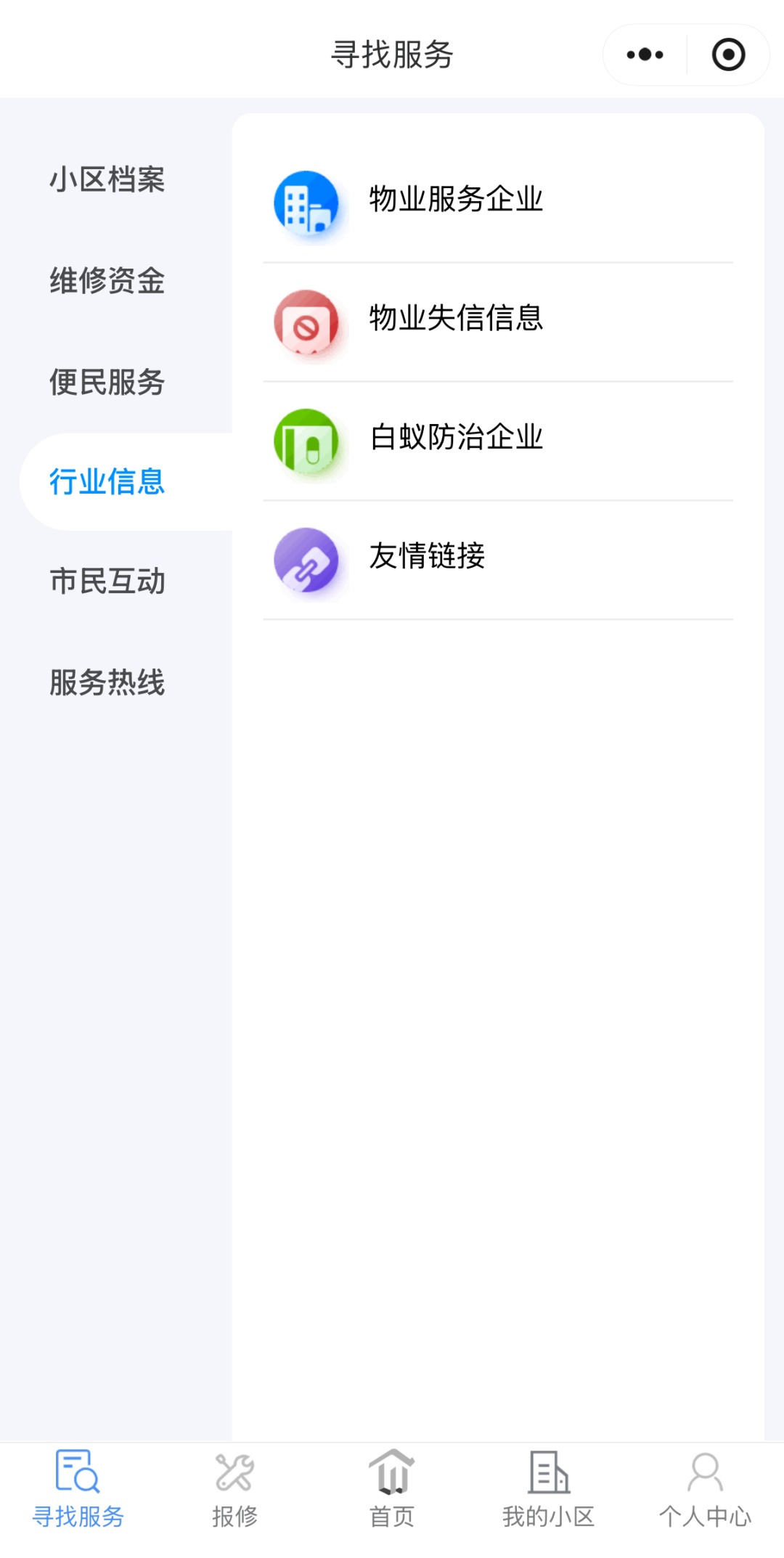 打开“上海物业”小程序,找到“寻找服务”板块,点击“白蚁防治企业”,筛选附近正规机构,直接联系上门。