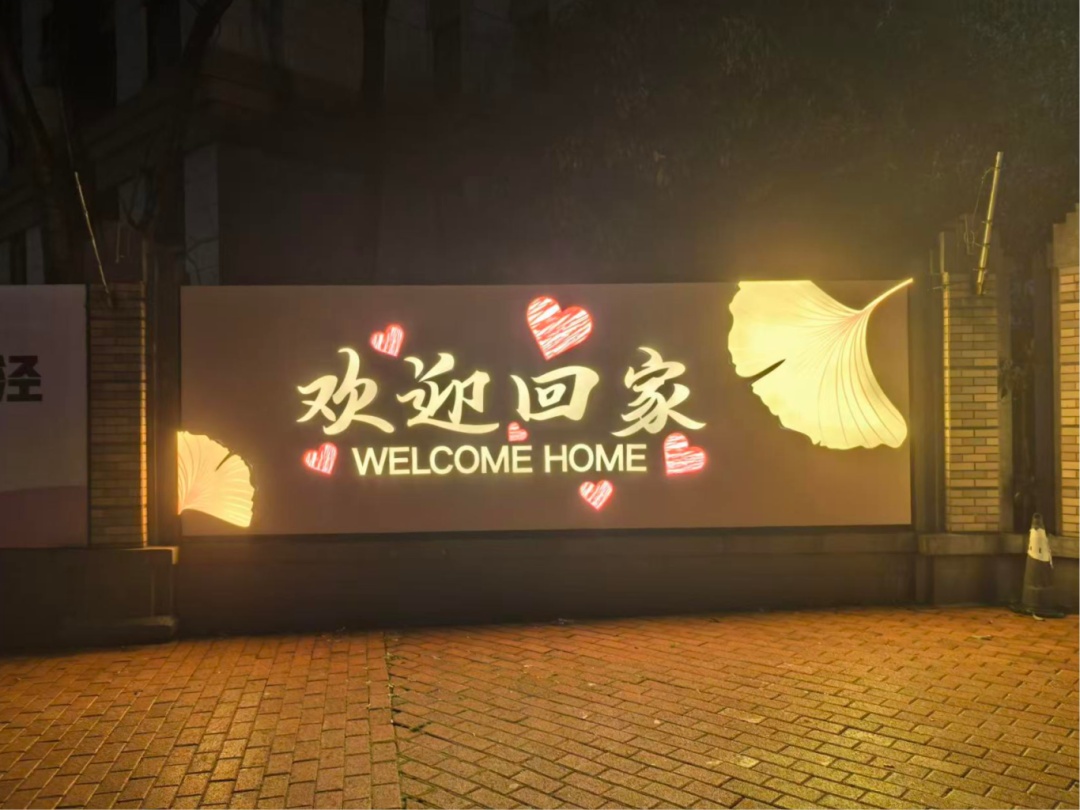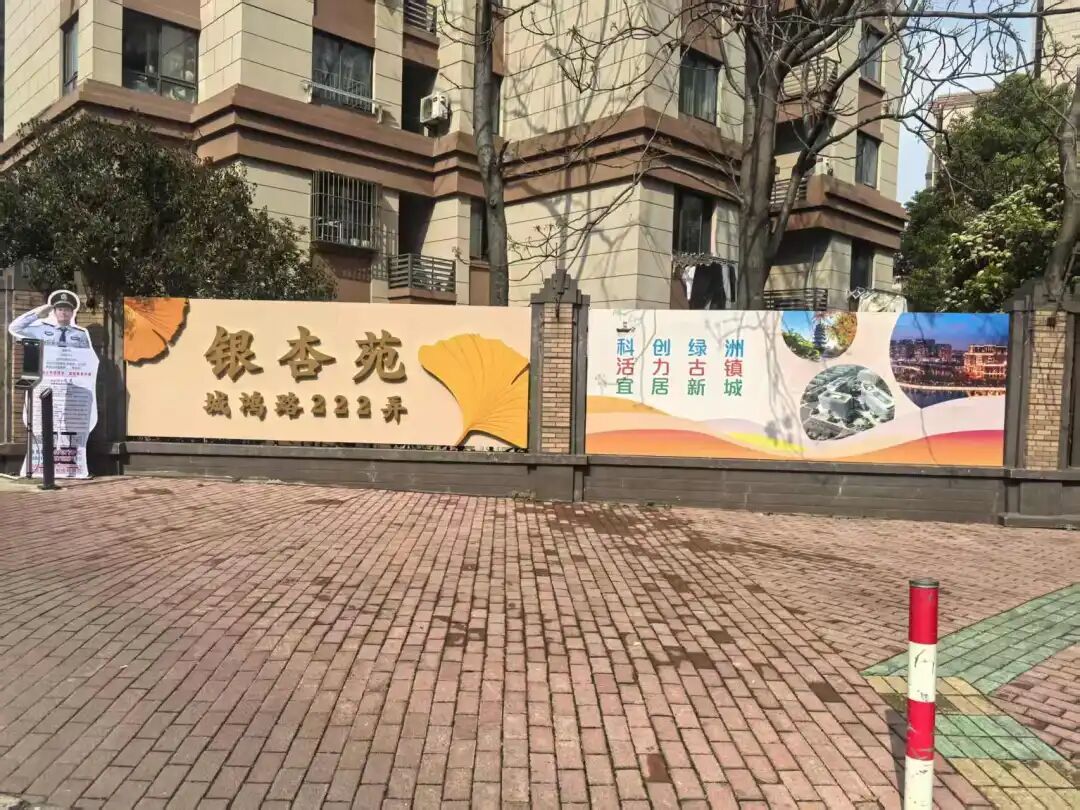 如今,标准亮化的小区门头醒目亮眼。设计结合小区名称,融入了一片片大大的银杏叶元素,既呼应了“银杏苑”的名字,也增添了几分自然与温馨。夜晚亮起时,柔和的灯光照亮了居民的归家路,更成为社区里一道独特的风景线。