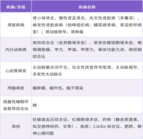 继发性高血压的常见病因
