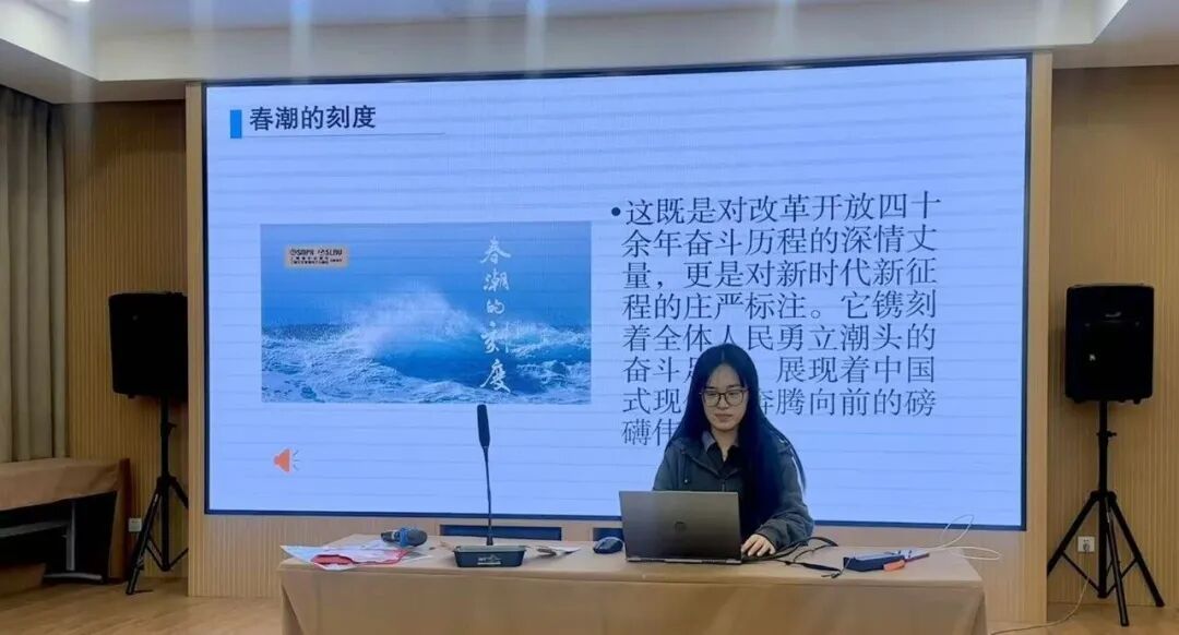 园区企业学唱。咨询公司党支部组织党员干部集中收听、学唱《春潮的刻度》,在悠扬激昂的旋律中领悟歌曲中蕴含的真理力量与时代脉搏。通过“听—学—唱”活动使党员干部将理论灌输转化为情感共鸣,在歌声中校准初心、砥砺使命。