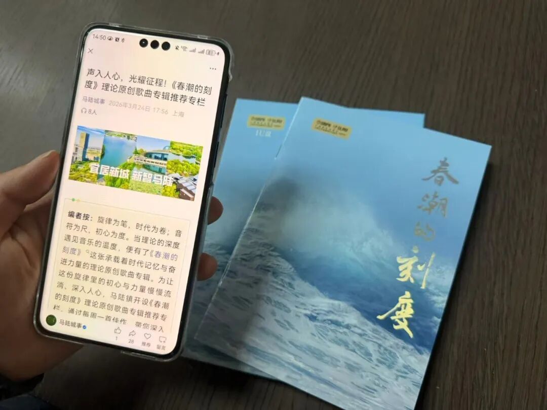 为推动线上线下同步传播,嘉定区马陆镇依托“马陆城事”微信公众平台,推出“声入人心 光耀征程——《春潮的刻度》理论原创歌曲专辑推荐专栏”,逐首解读理论歌曲创作背景、核心理论内涵与时代意义,搭配音频试听,打造“指尖上的理论课堂”。通过线上广泛传播、转发分享、互动点赞,打破时空限制,让理论歌曲触达更多党员群众,实现线下热唱、线上热播、全域热传,推动党的创新理论以更鲜活、更贴近群众的方式入脑入心、落地生根。