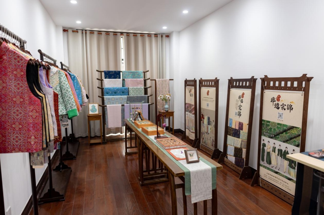 汉未央专注中华传统文化传承,本次展出宋锦服装及文创,以古法织造工艺打造葫芦项链、吉祥挂件等,将祥云、瑞草等传统纹样融入日常,传递东方美学。