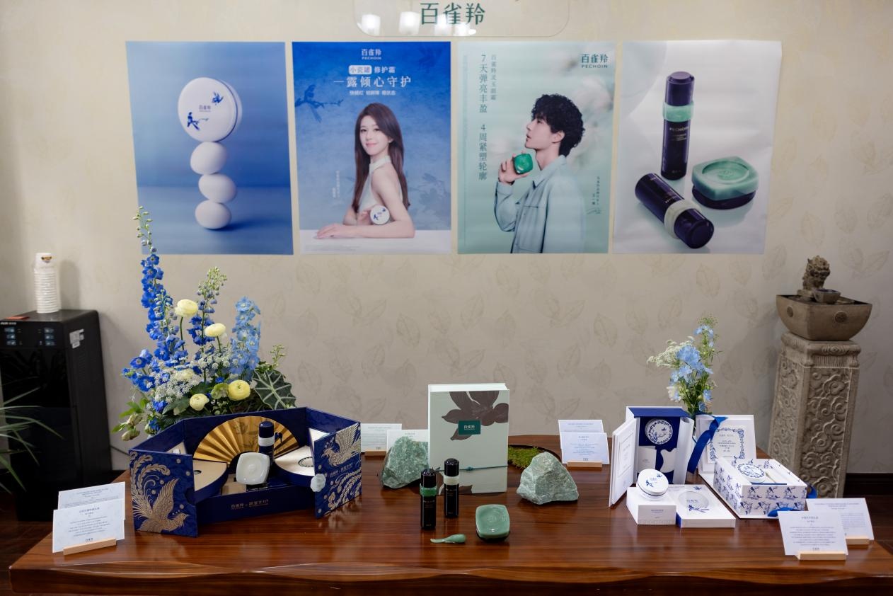 百雀羚始于1931年,深耕草本与科技融合,携手非遗大师将青花瓷、玉雕等工艺融入产品,本次展出东方礼灵玉系列、非遗青花瓷礼盒等,兼具美学与收藏价值。